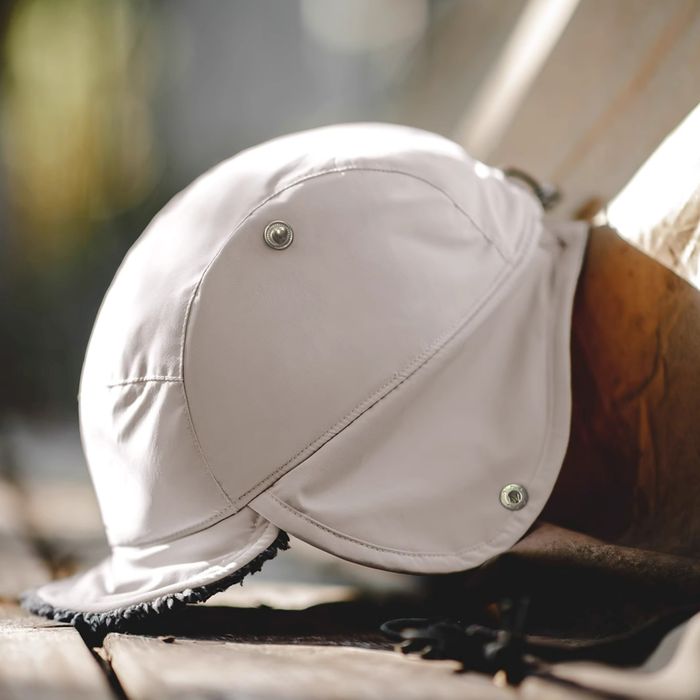 サイドのボタンでフラップを上げ下げでき、気温やシーンに合わせてアレンジ可能です。
