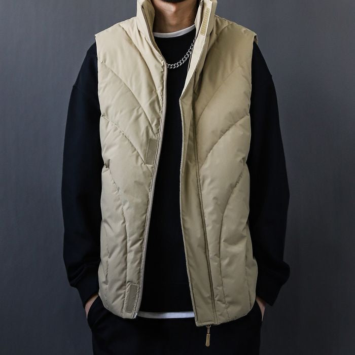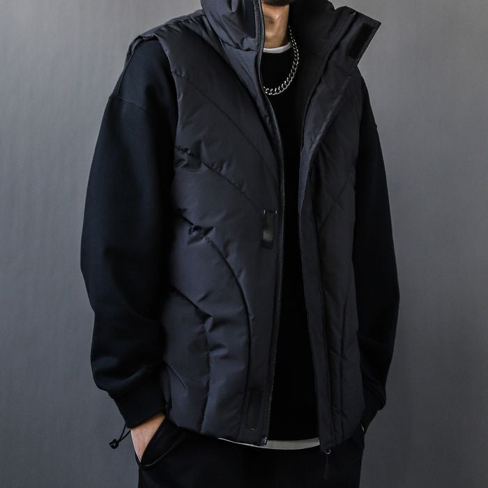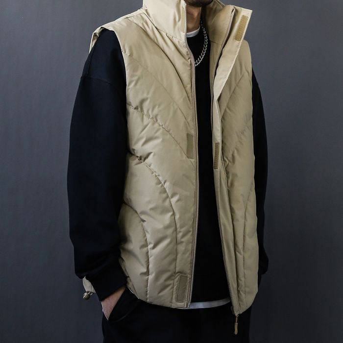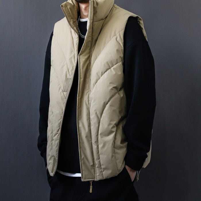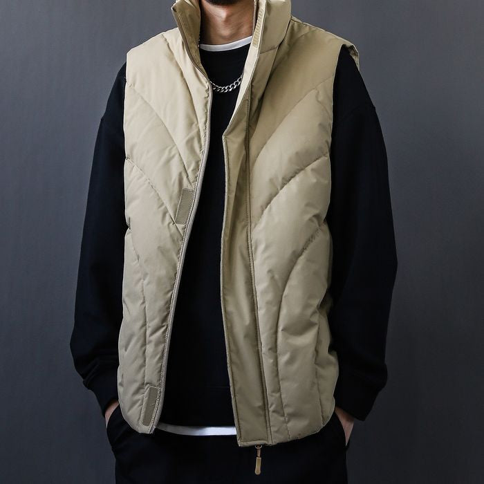 立体的なステッチが印象的な中綿ベスト。