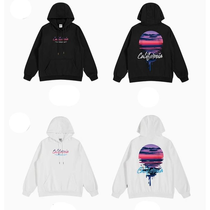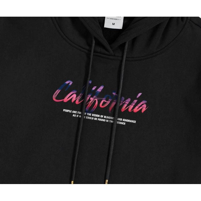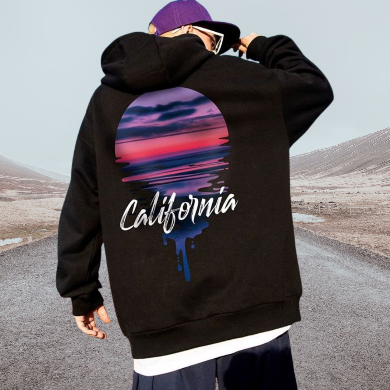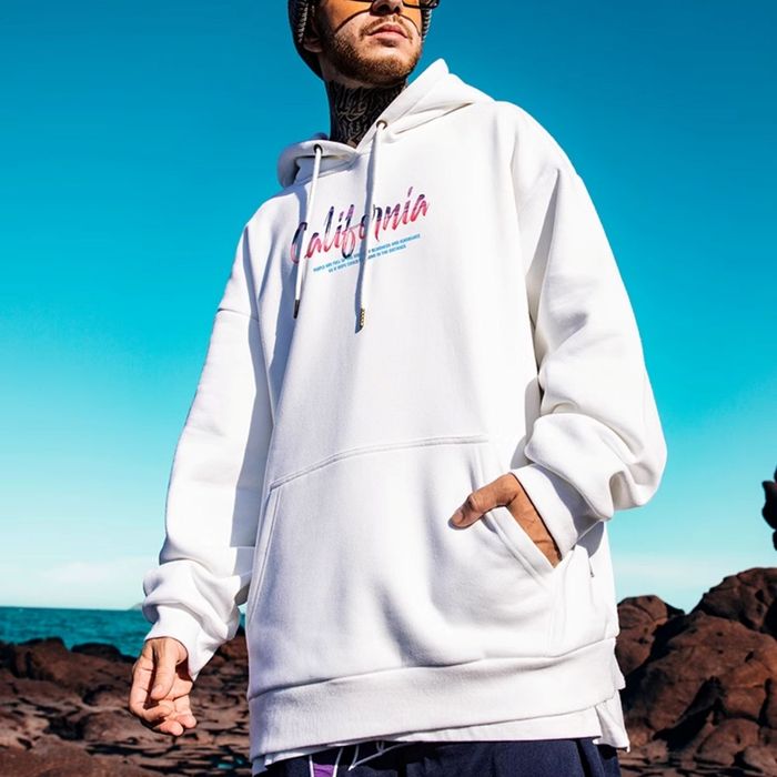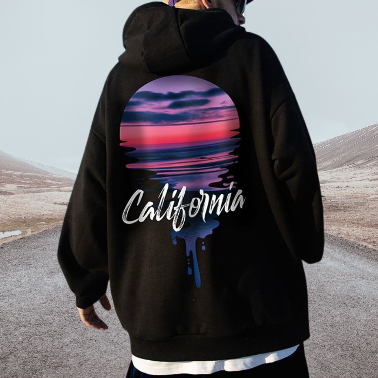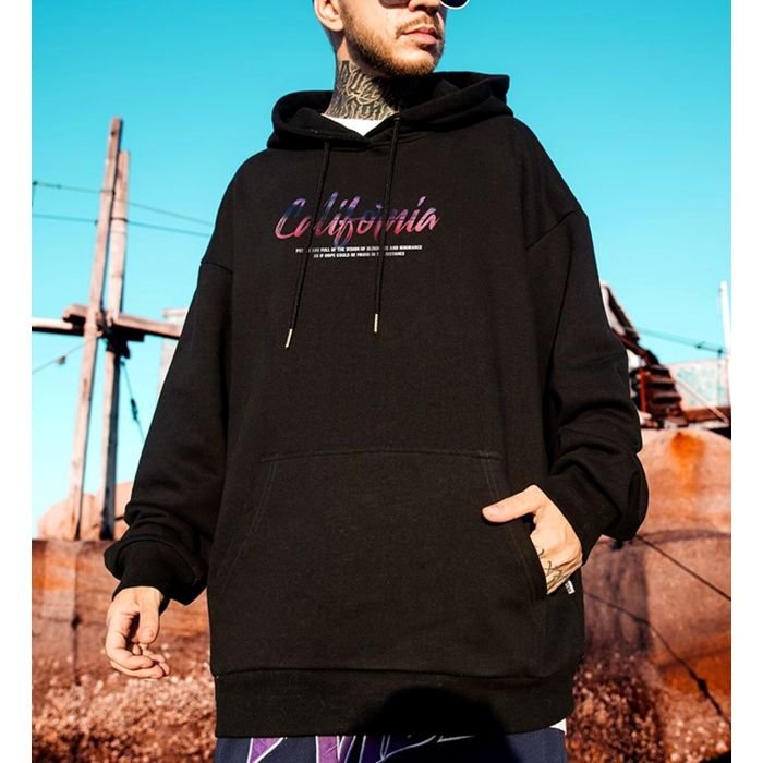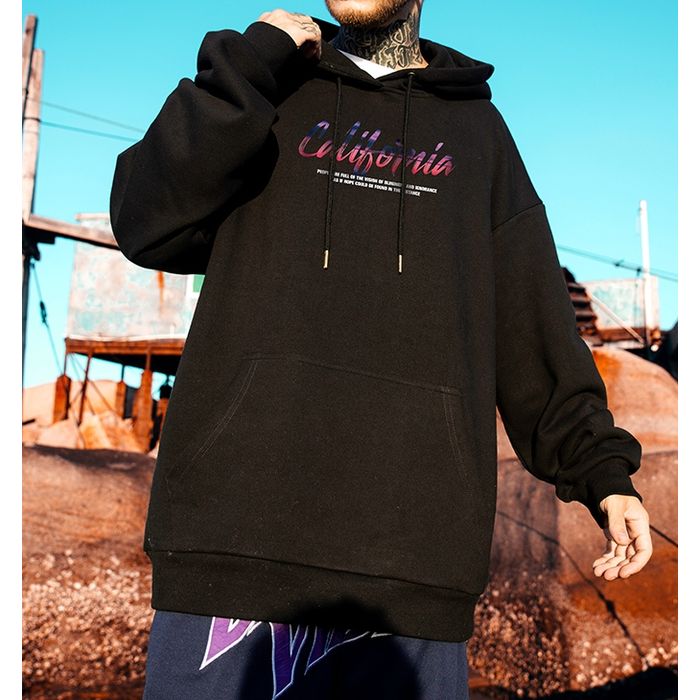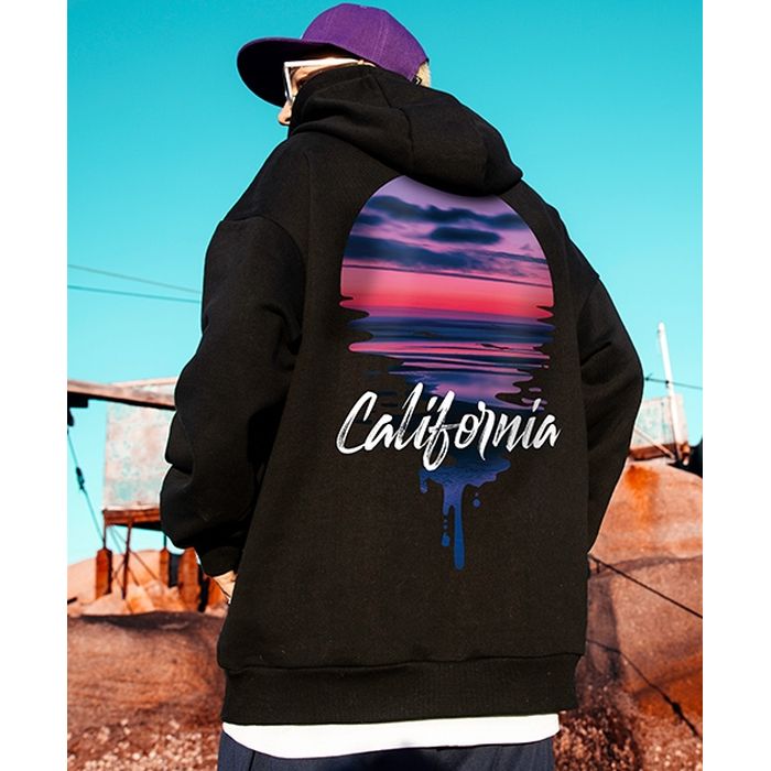 グラフィックプリントがアクセントのオーバーサイズフーディ。