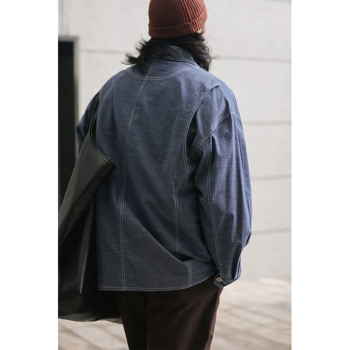 コントラストのあるステッチでカジュアル感のあるシャツ。