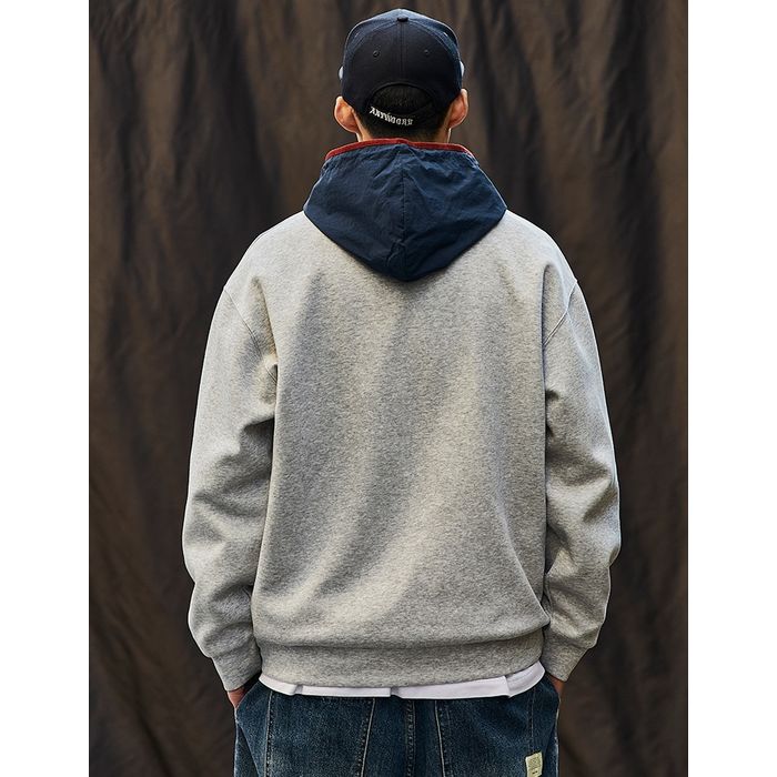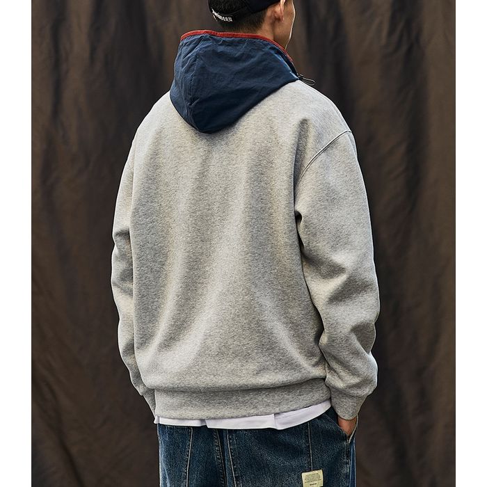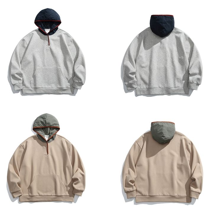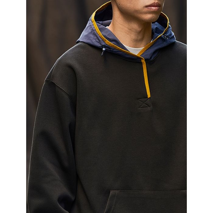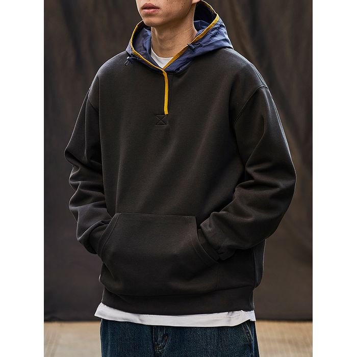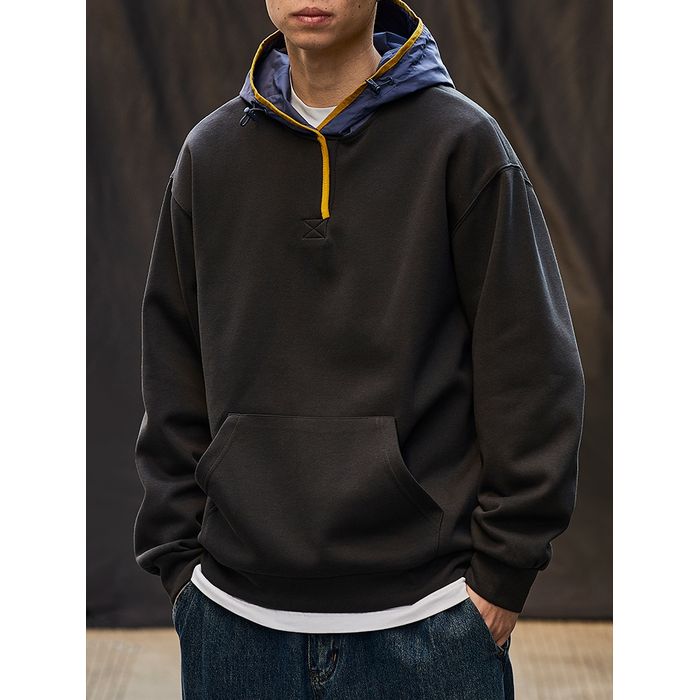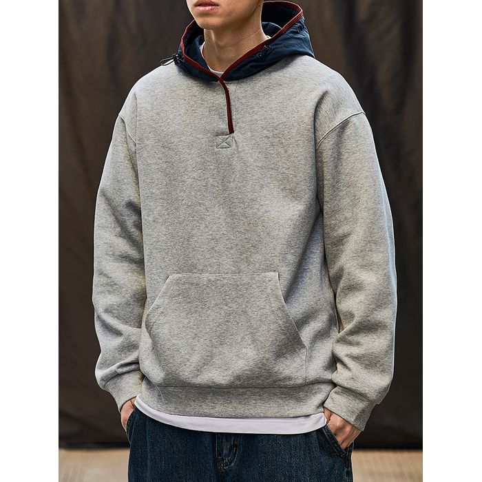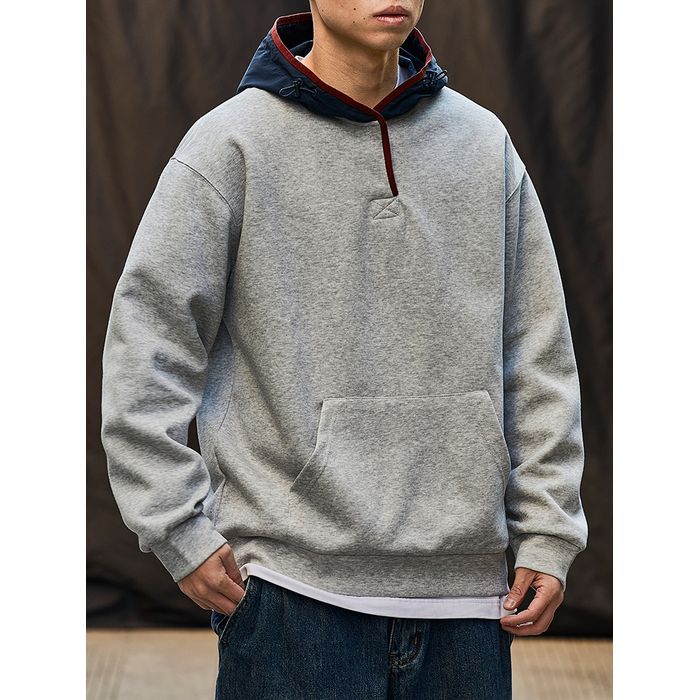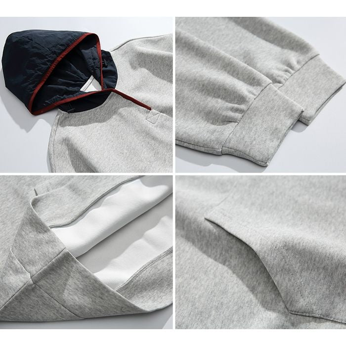 コントラストのあるフードがアクセントのプルオーバーフーディ。