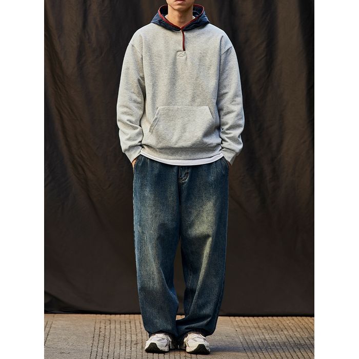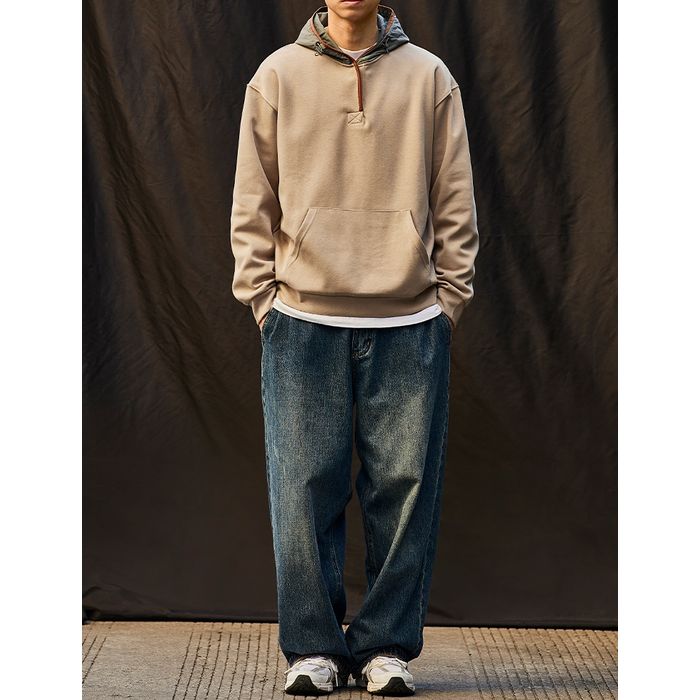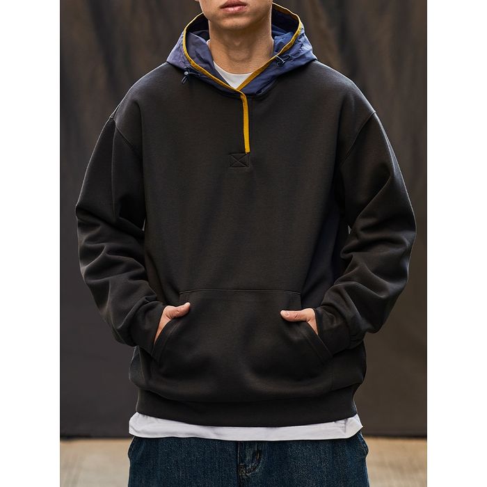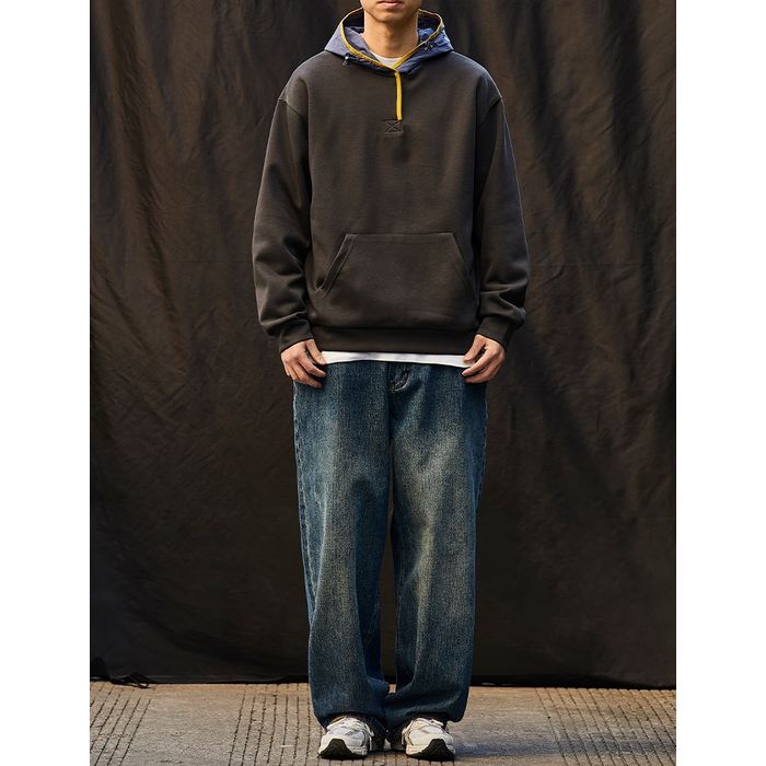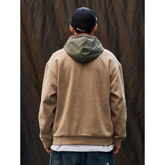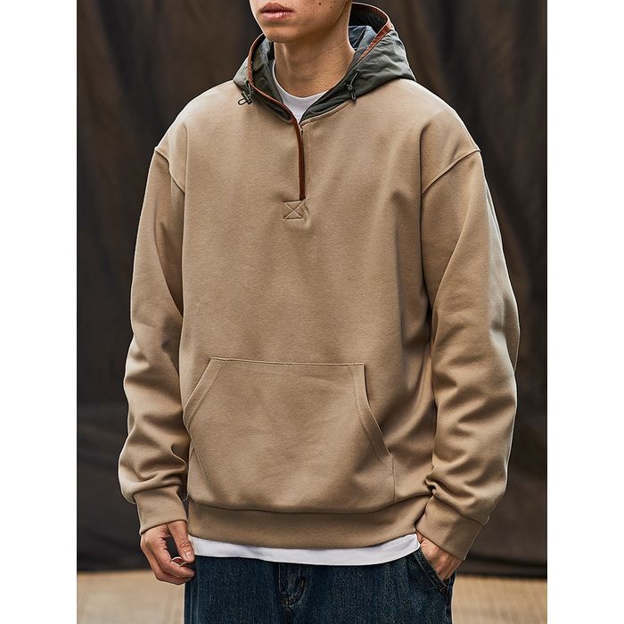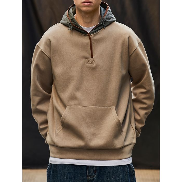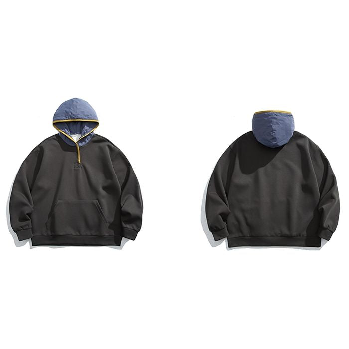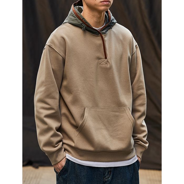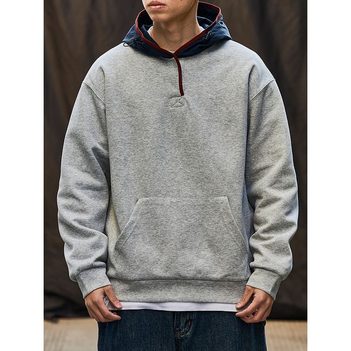 コントラストのあるフードがアクセントのプルオーバーフーディ。