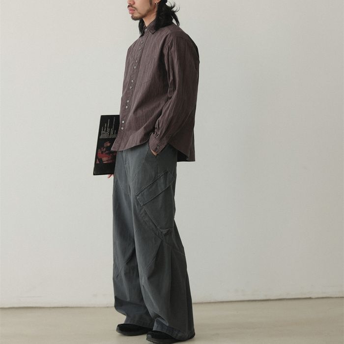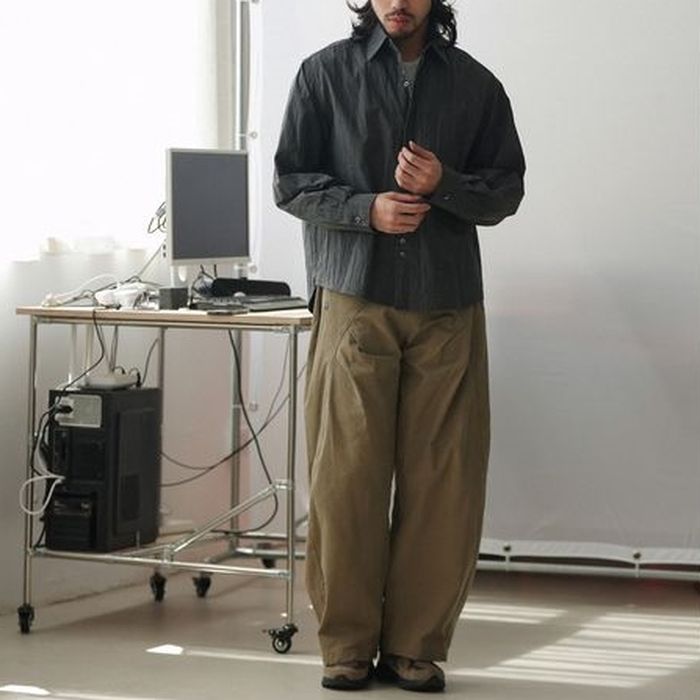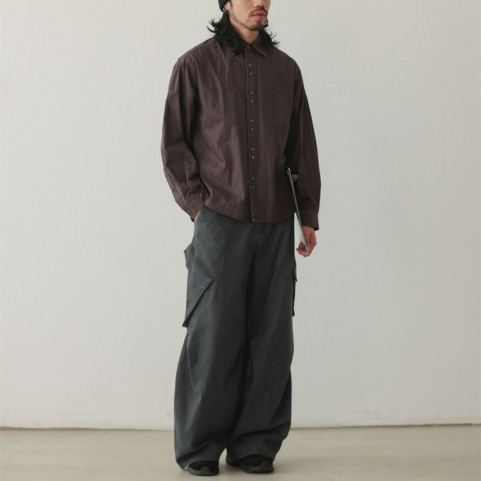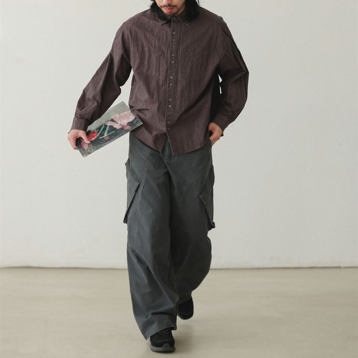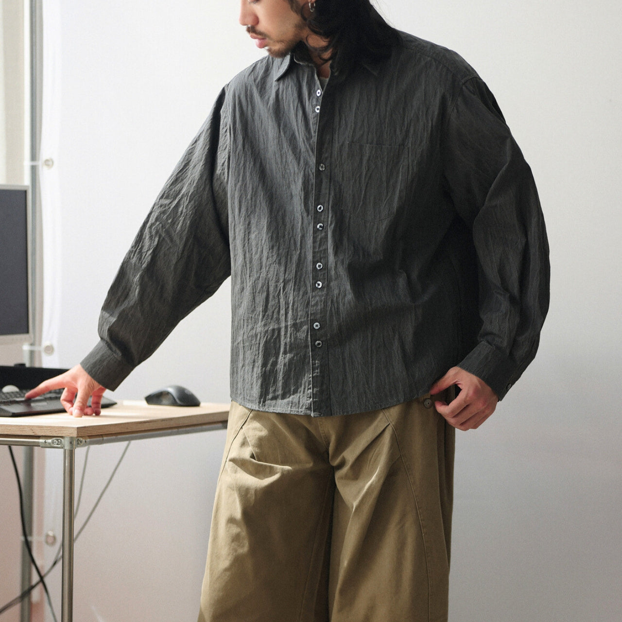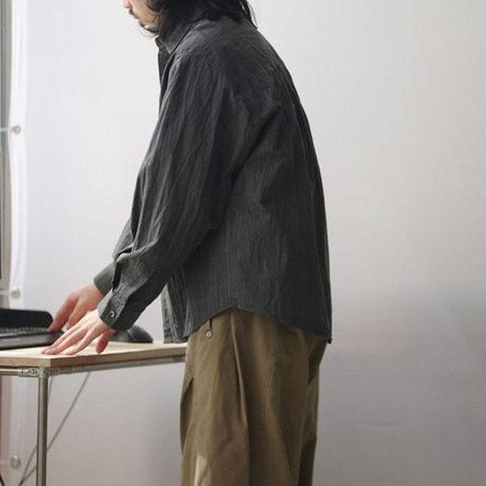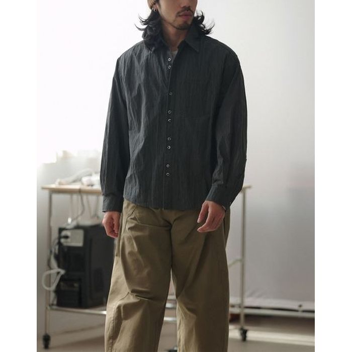 シワ加工されたこなれ感のある長袖シャツ。