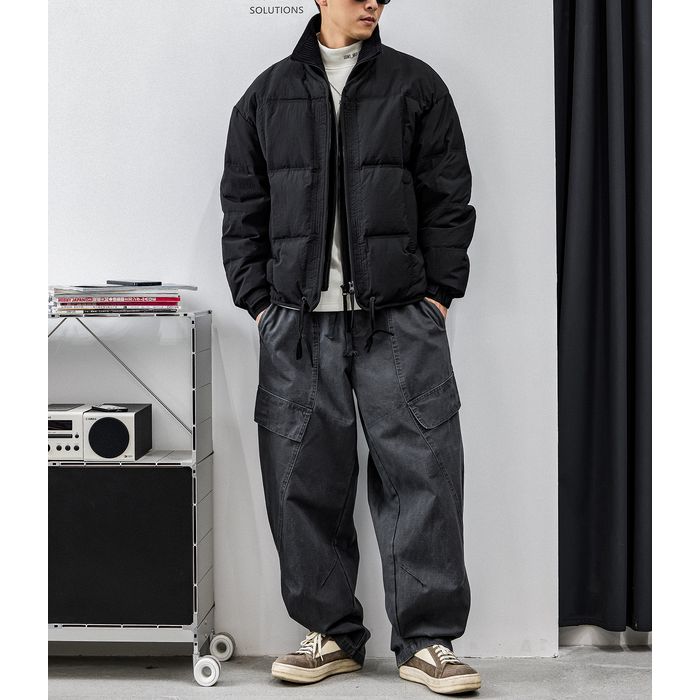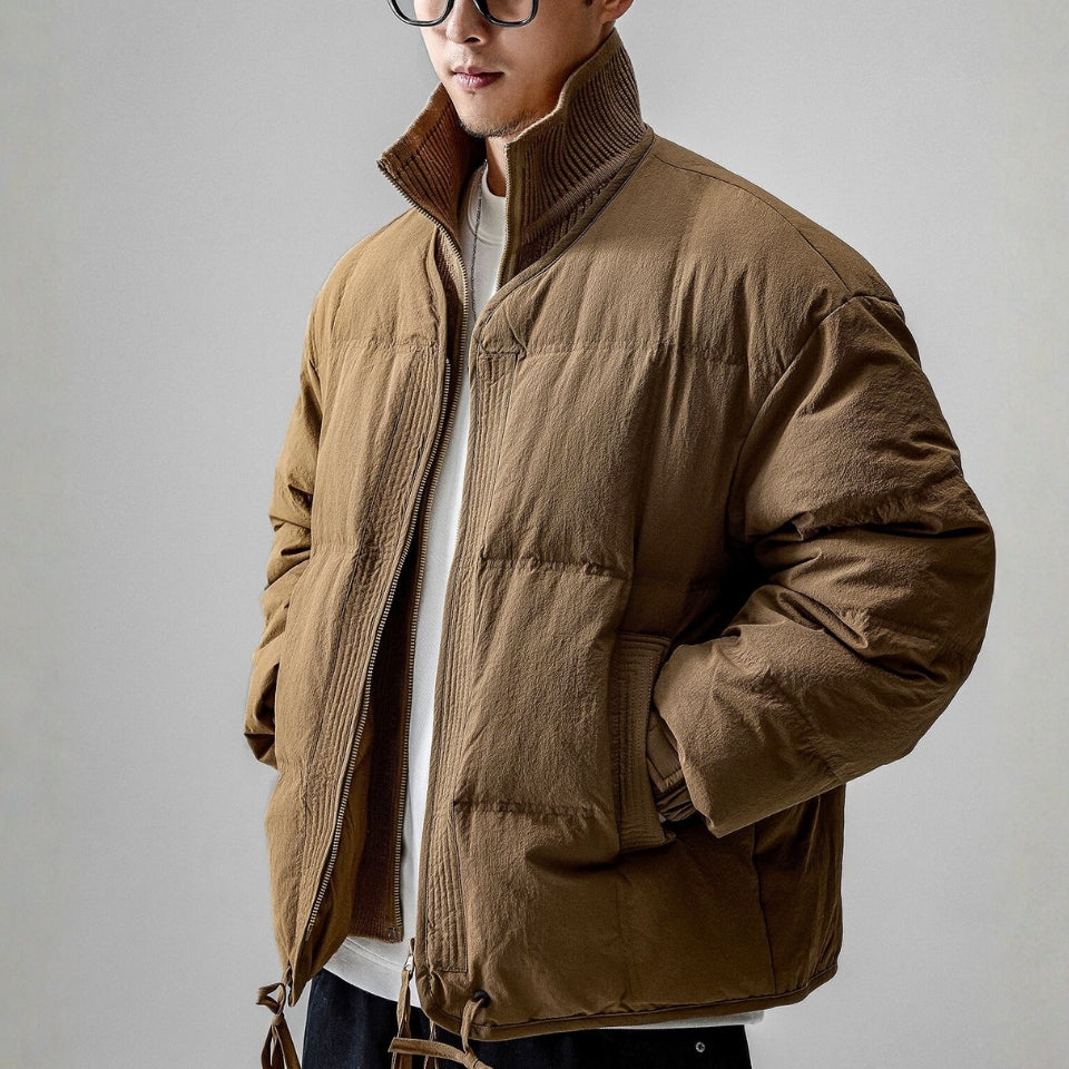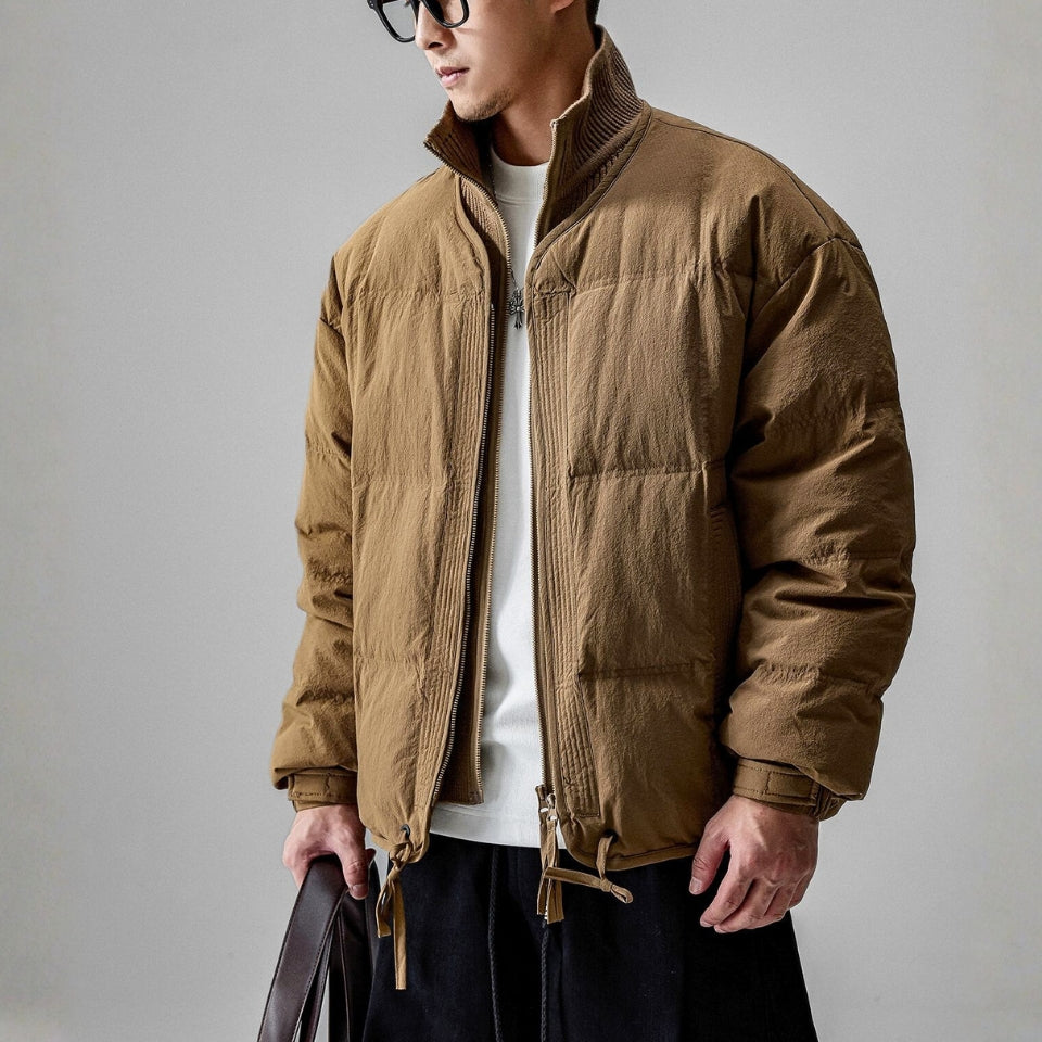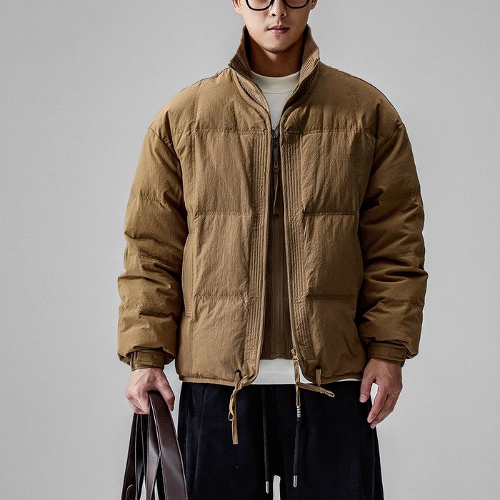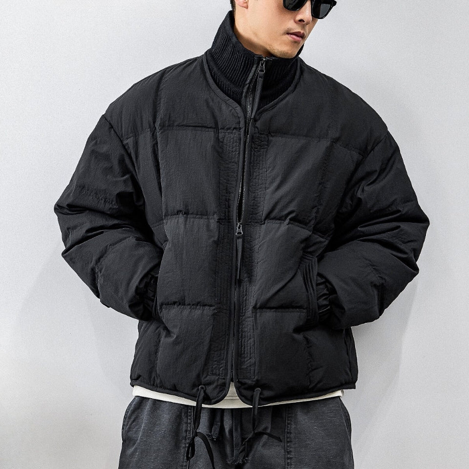 スタンドカラーとドローコード付きの裾がデザインのポイントで、シルエットを自在に調整できるデザインです。