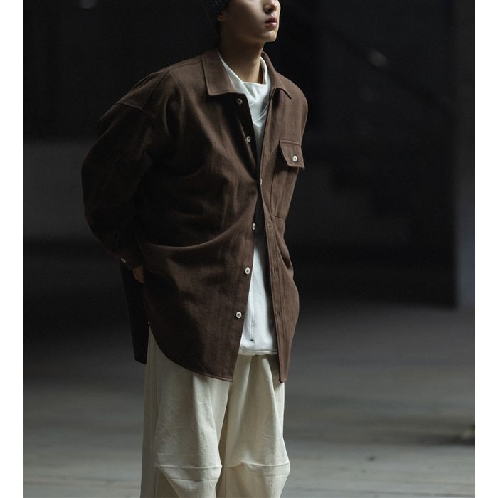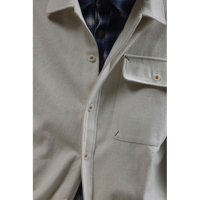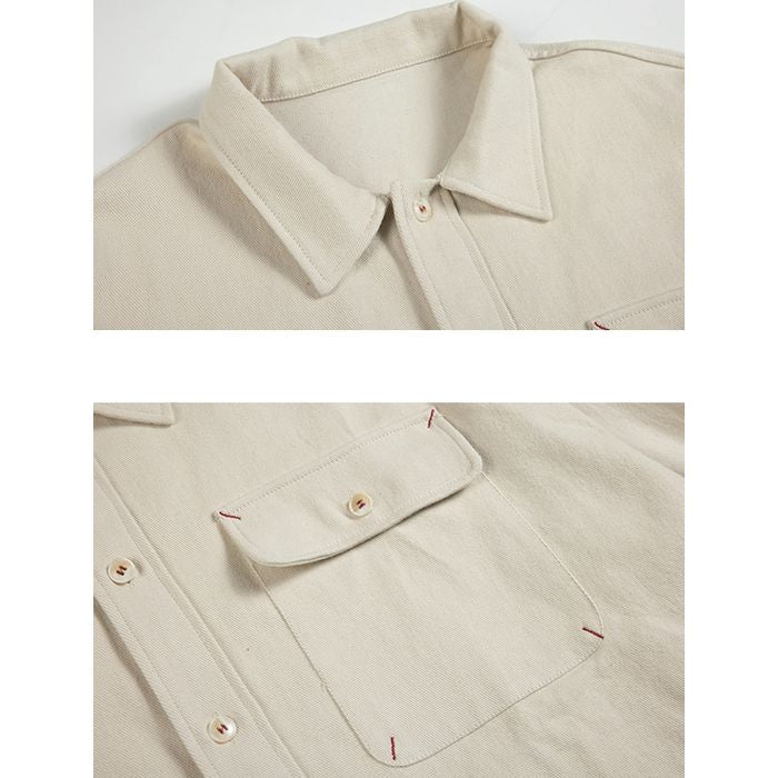 コントラストのあるステッチが入った胸ポケットがポイントのシャツ。