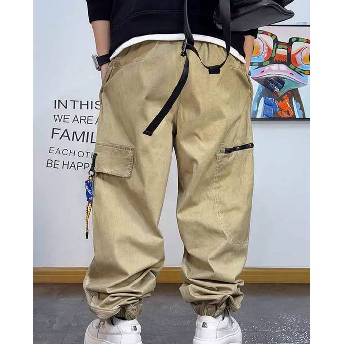サイドポケットに施されたストラップがアクセントのカーゴパンツ。