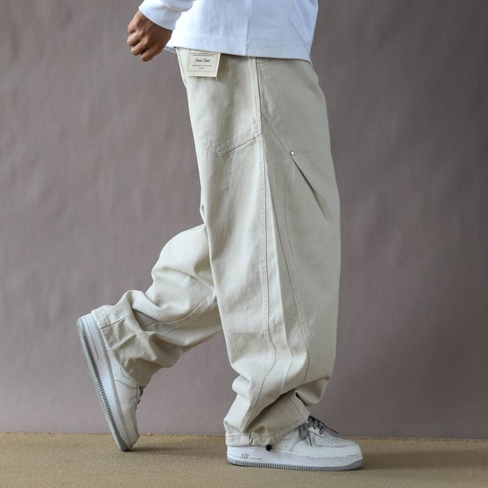 斜めに入ったタックが特徴のワイドパンツ。