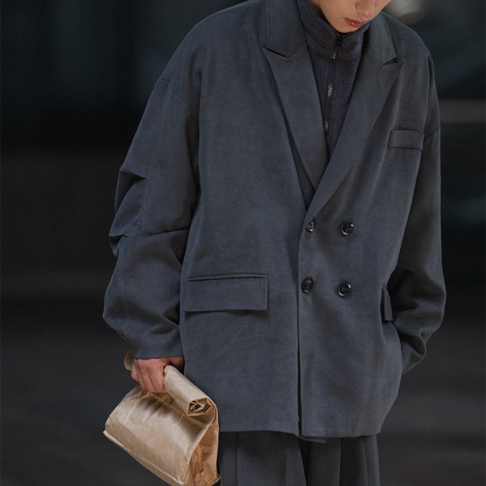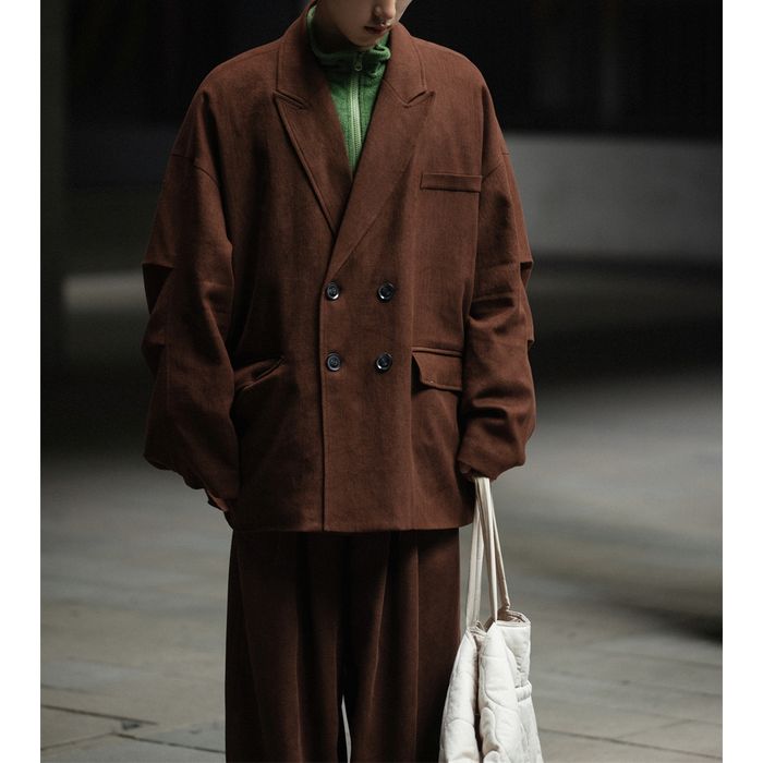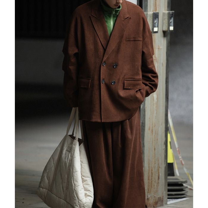 ゆったりとしたシルエットが魅力のダブルブレストジャケット。