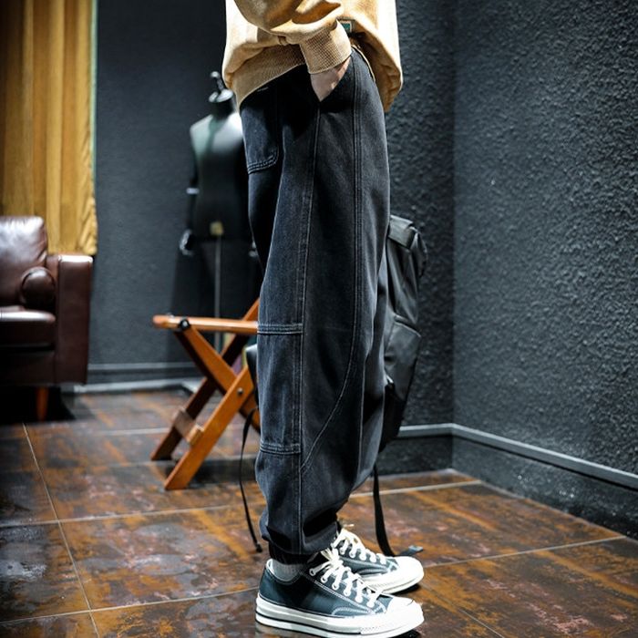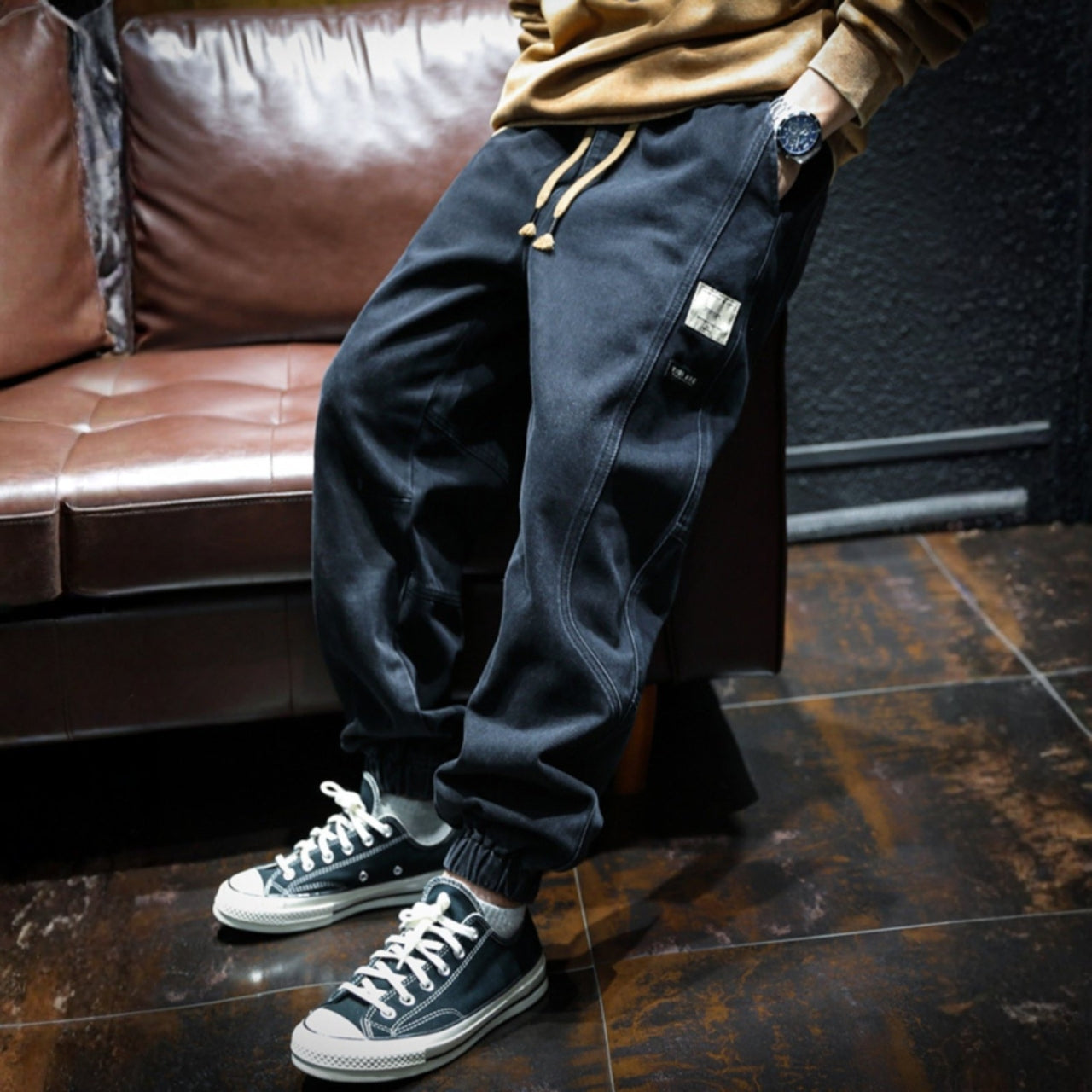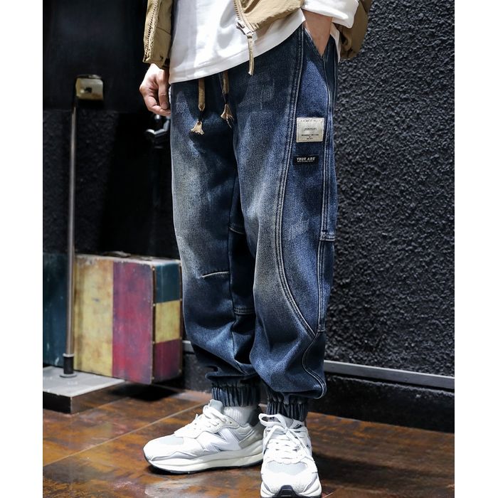 ストリートテイストを感じさせるデニムジョガーパンツ。