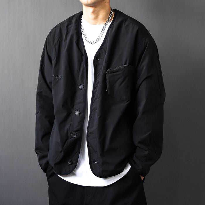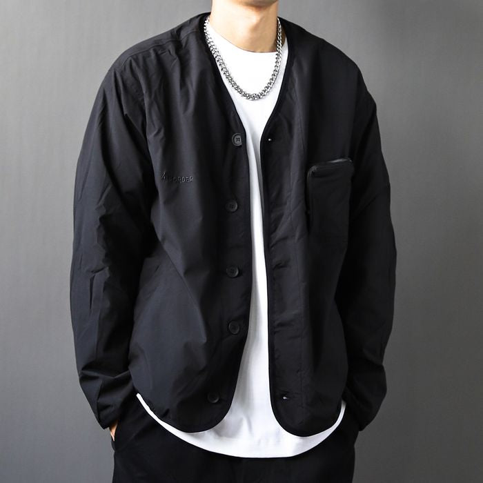 胸元のポケットデザインとパイピングで、シンプルながら印象的な仕上がり。