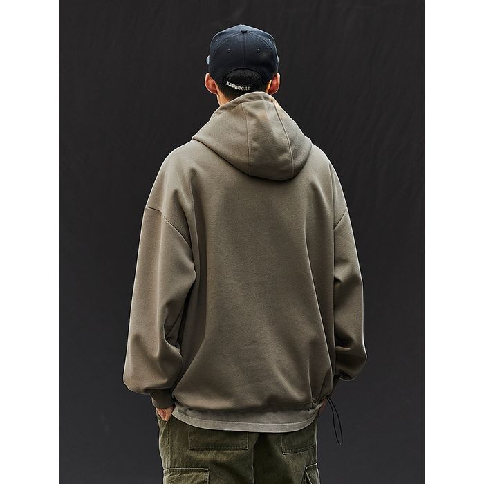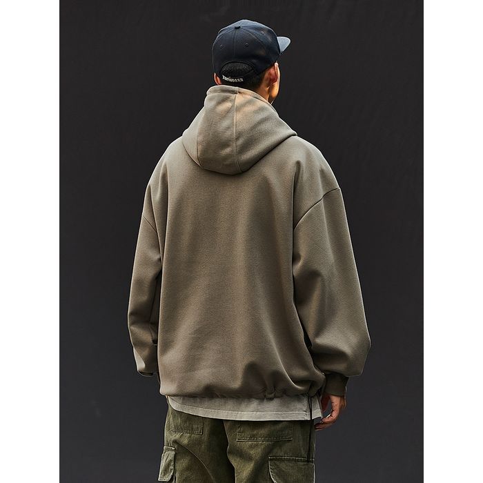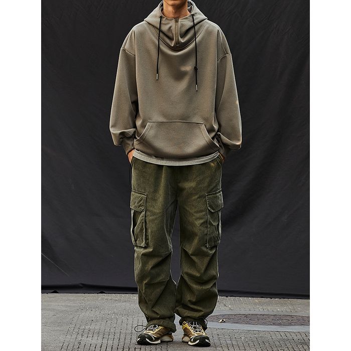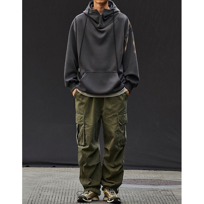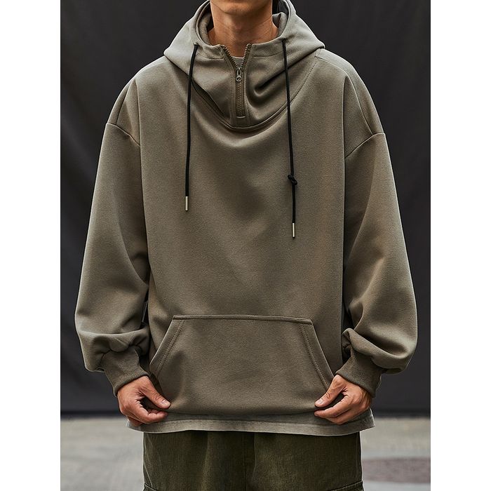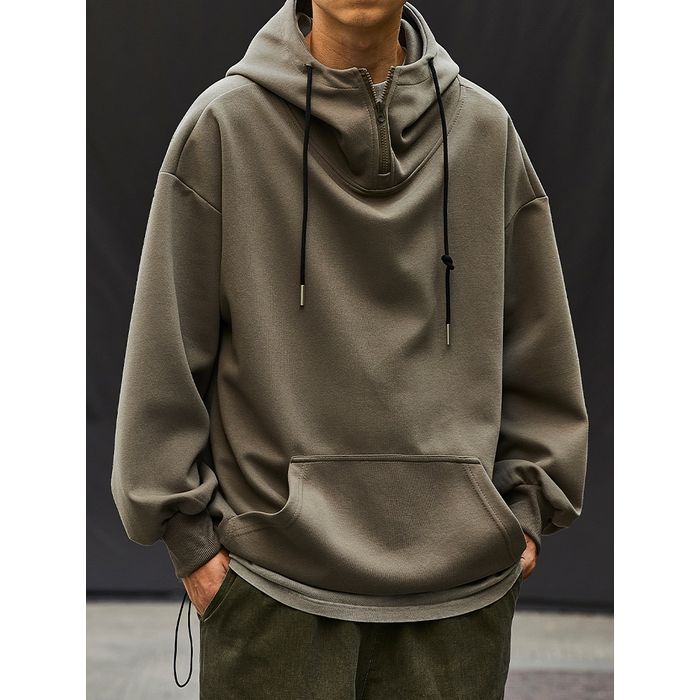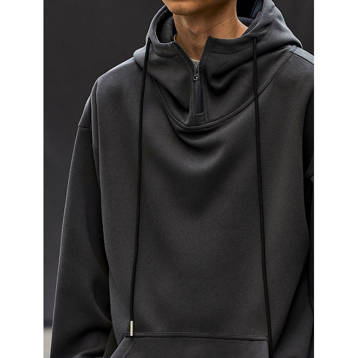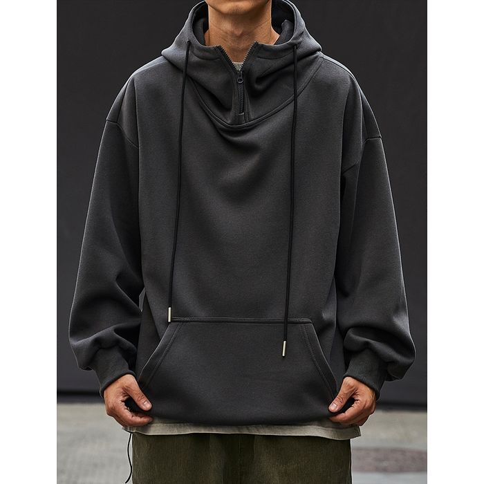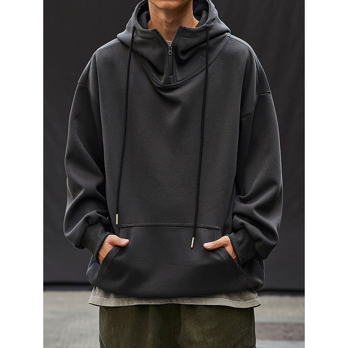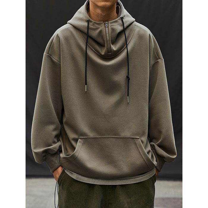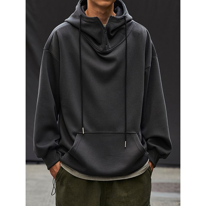 ゆるやかなシルエットのハーフジップフーディ。