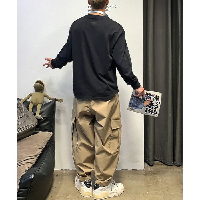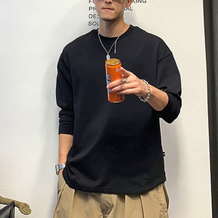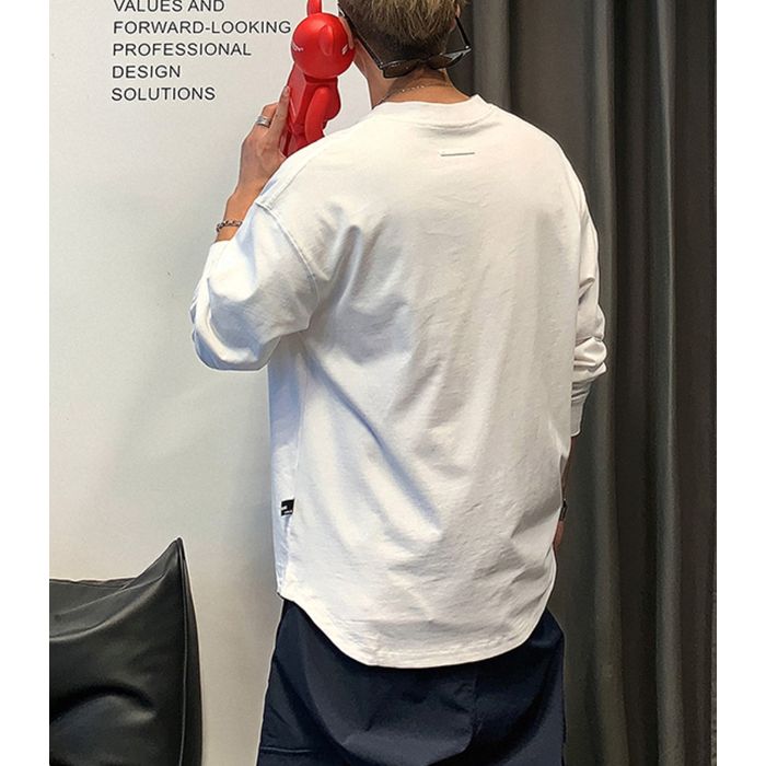 バックにラベルがワンポイント入った長袖Tシャツ。