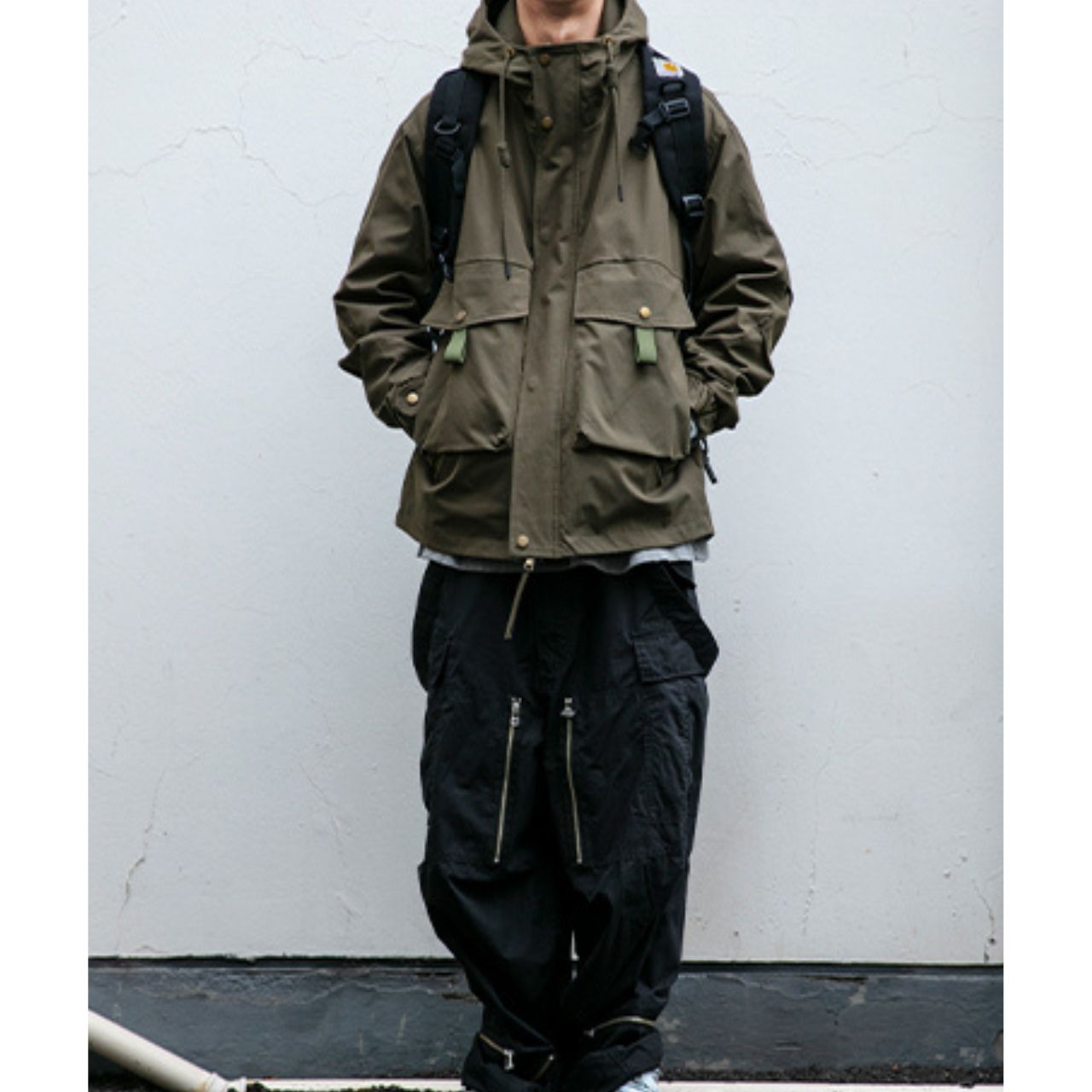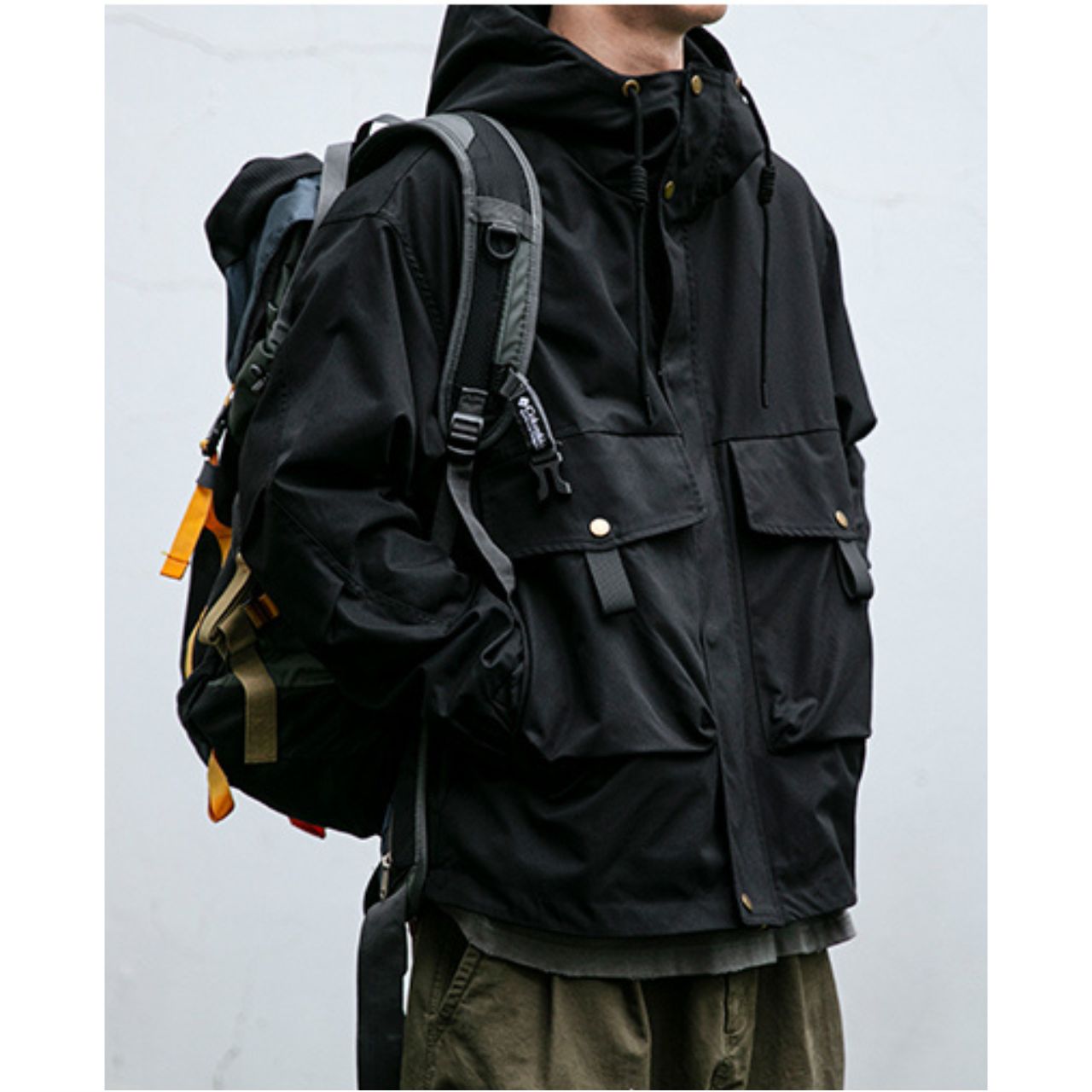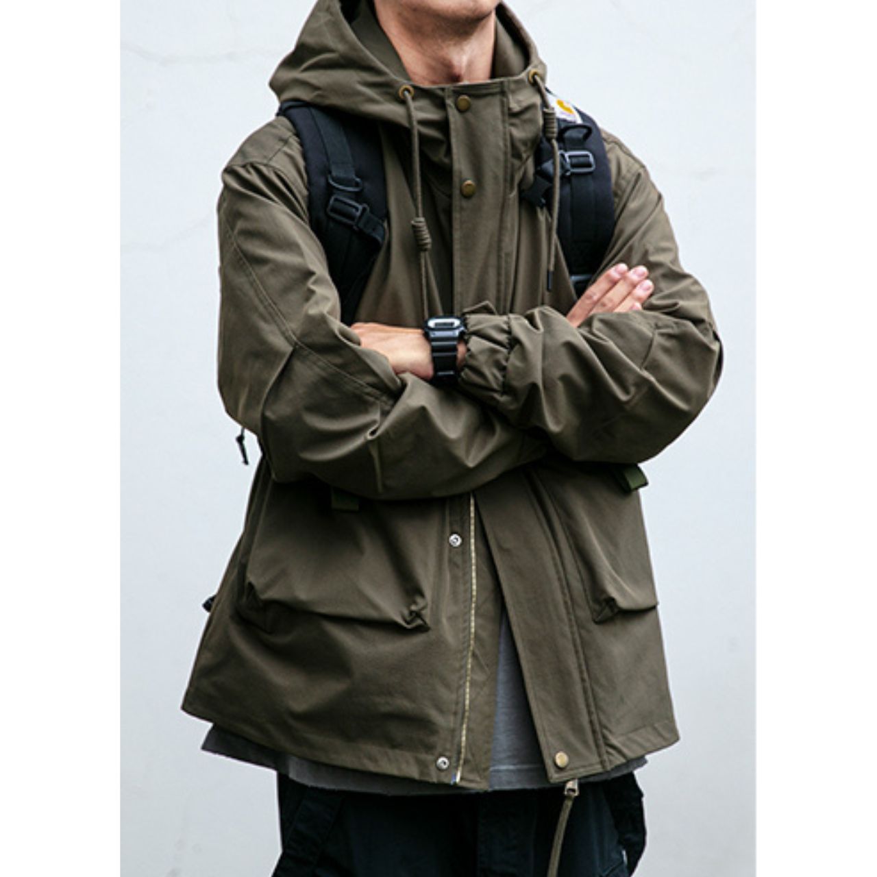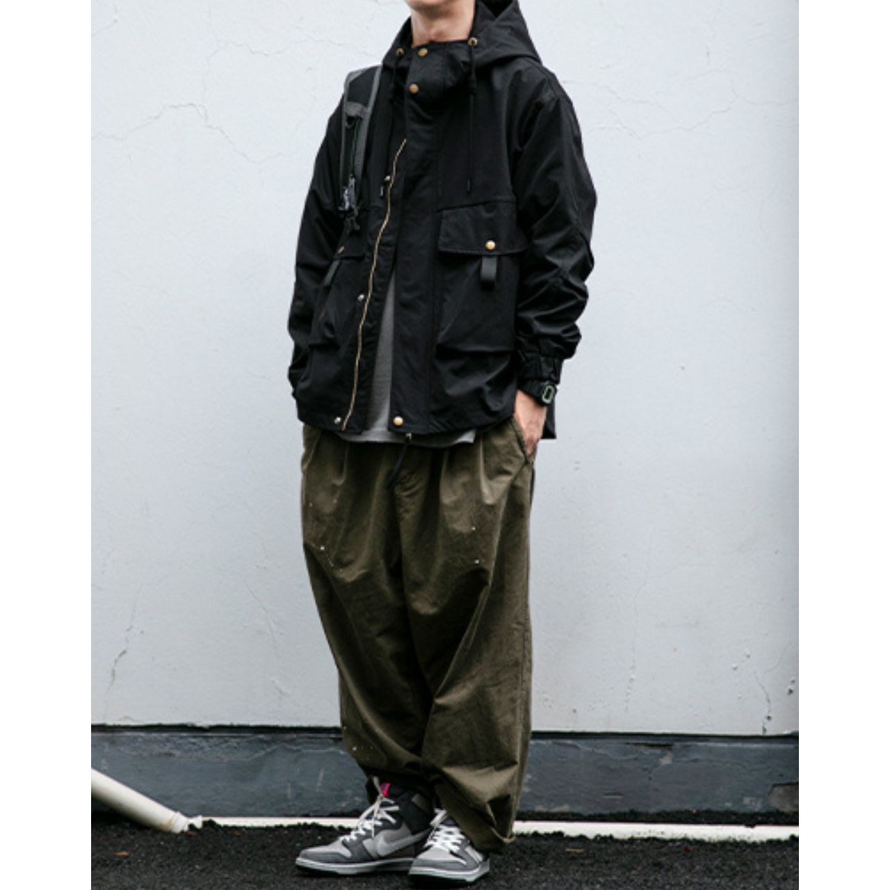 程よくゆとりのあるシルエットに、立体的なフードと大ぶりのポケットが印象的。