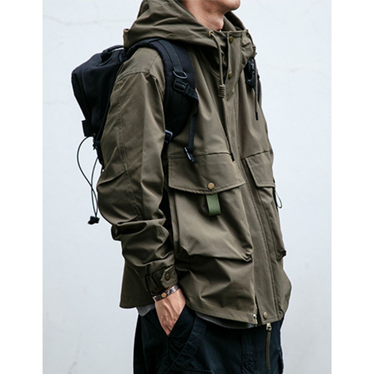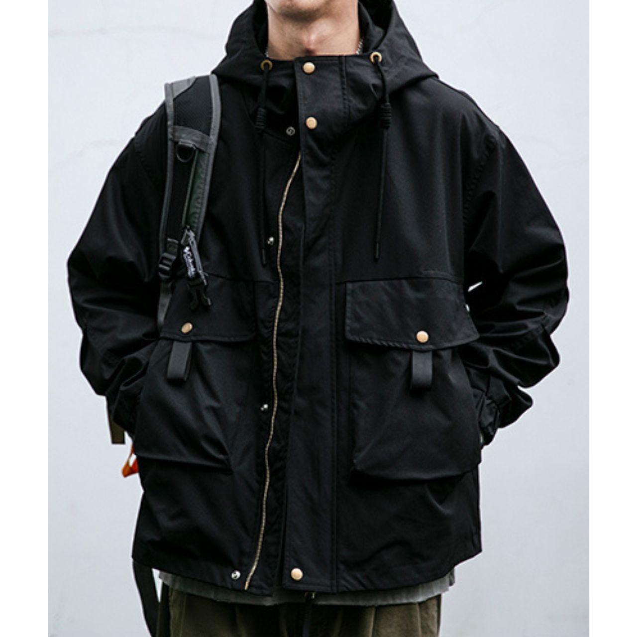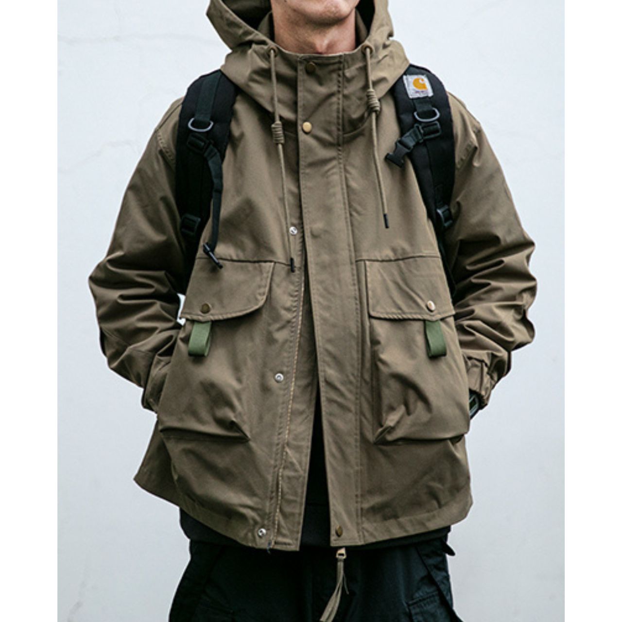程よくゆとりのあるシルエットに、立体的なフードと大ぶりのポケットが印象的。