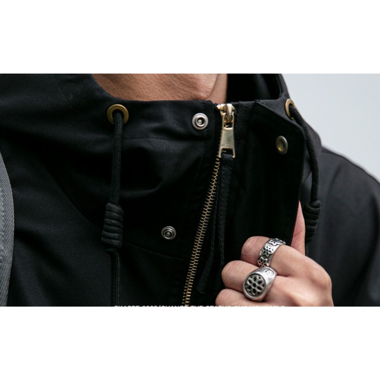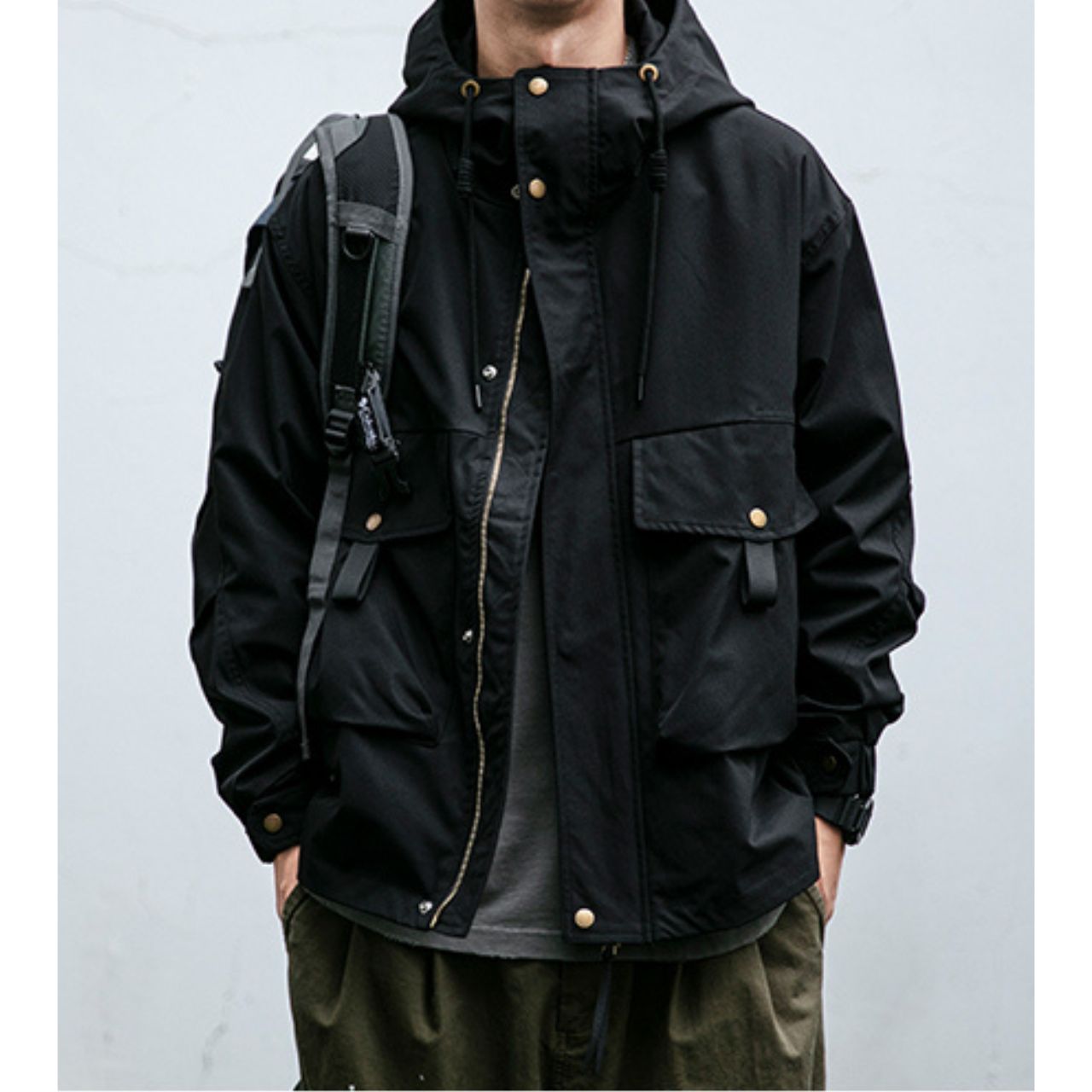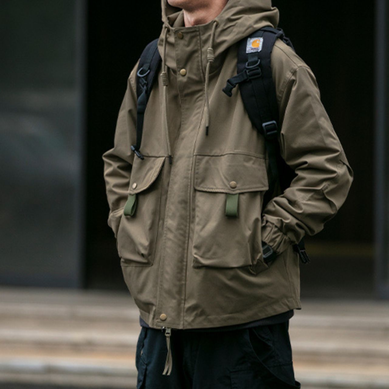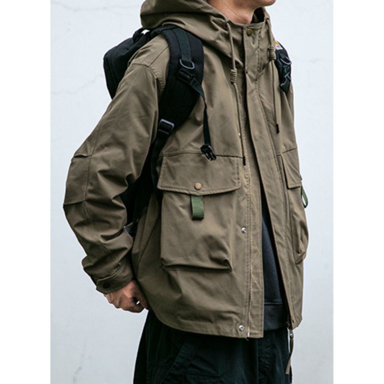 程よくゆとりのあるシルエットに、立体的なフードと大ぶりのポケットが印象的。