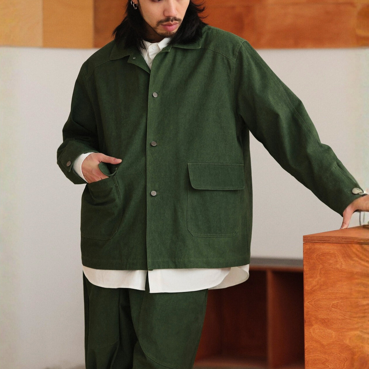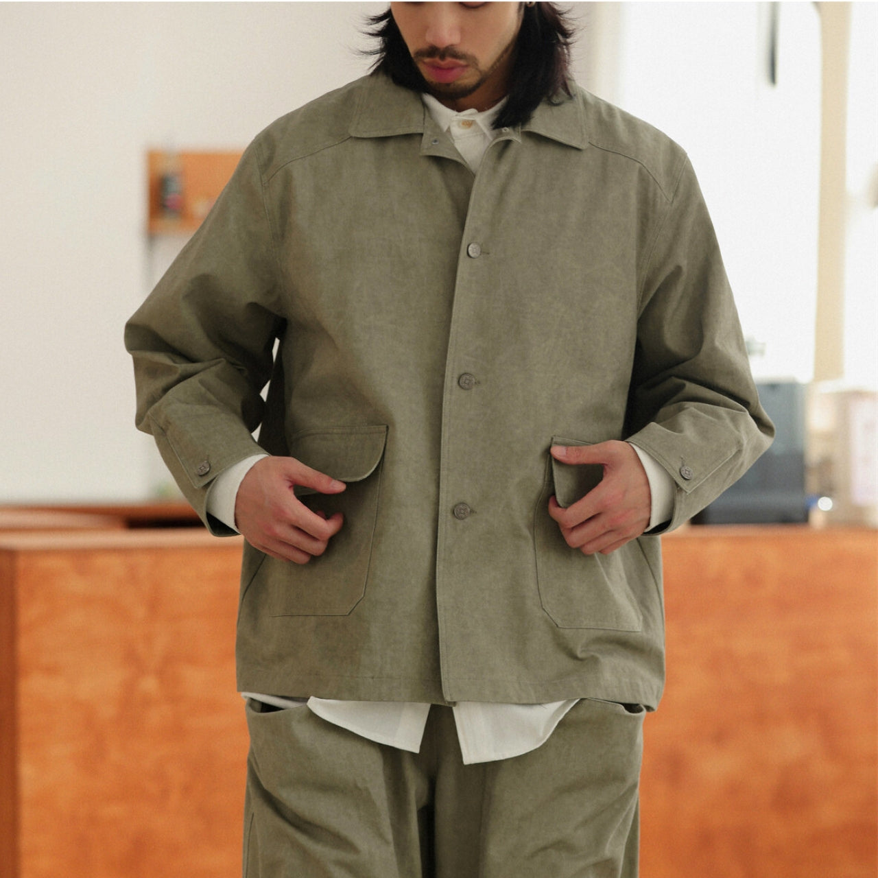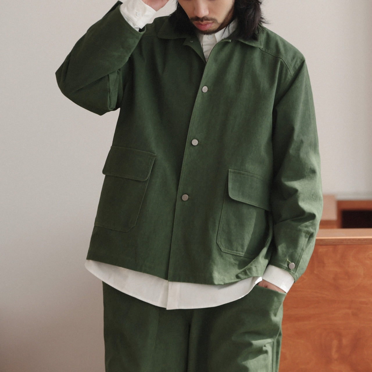 フロントの大きなフラップポケットが印象的なシャツジャケット。
