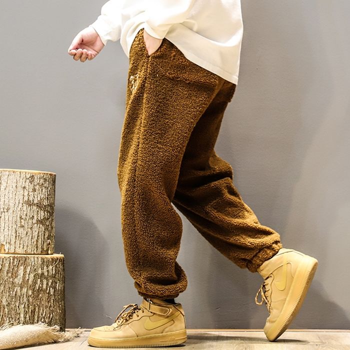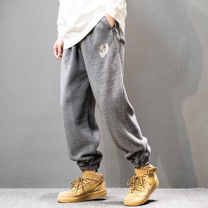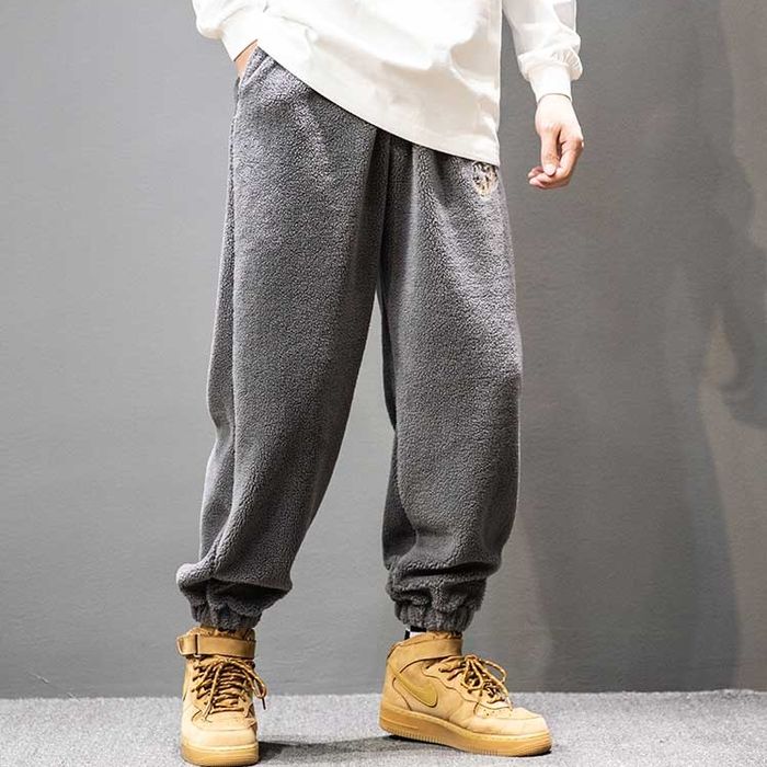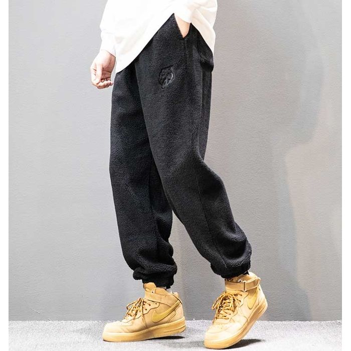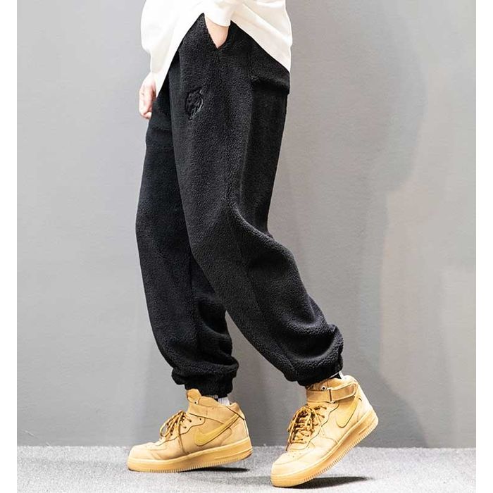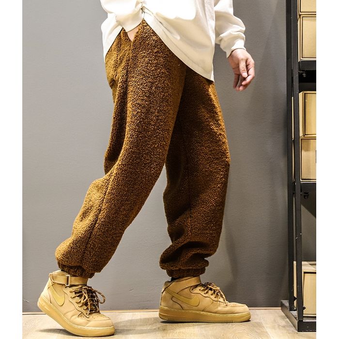 サイドに刺繍がワンポイント入ったフリースジョガーパンツ。