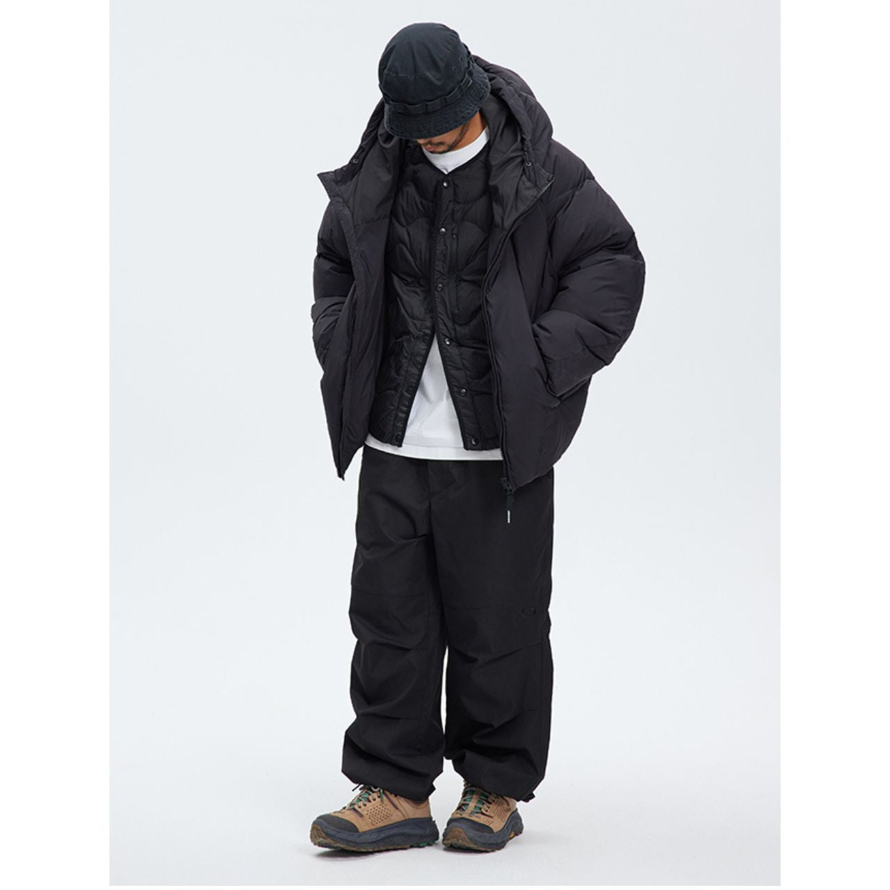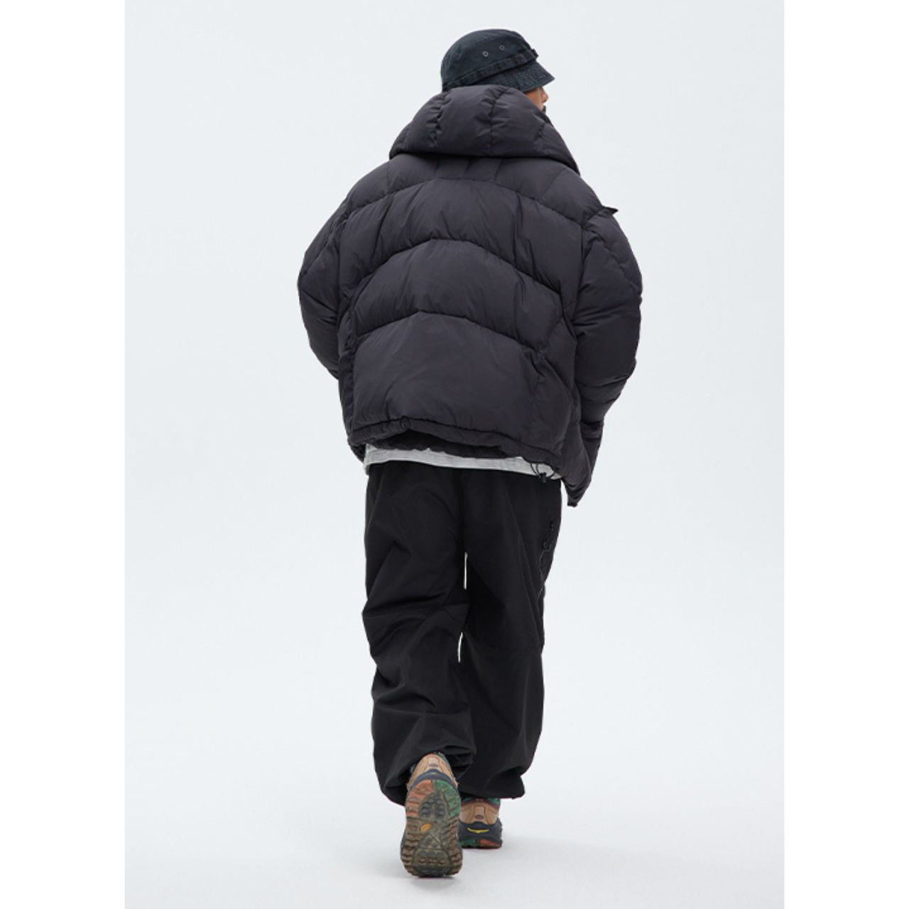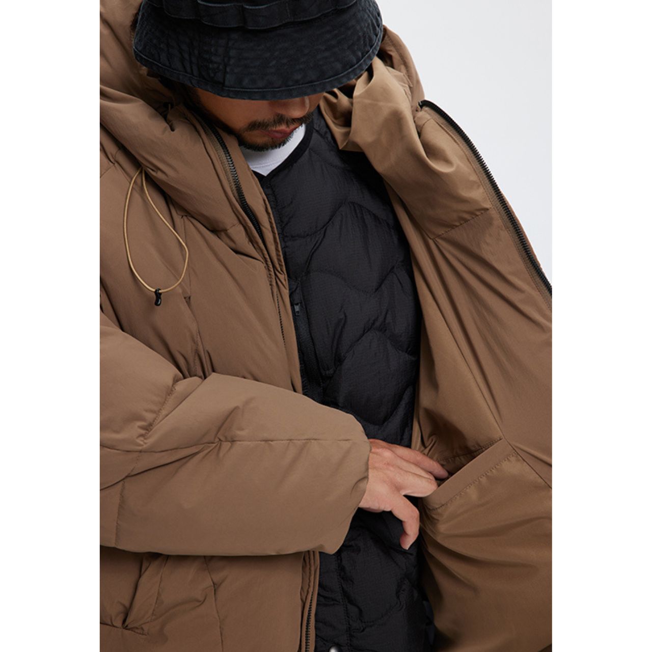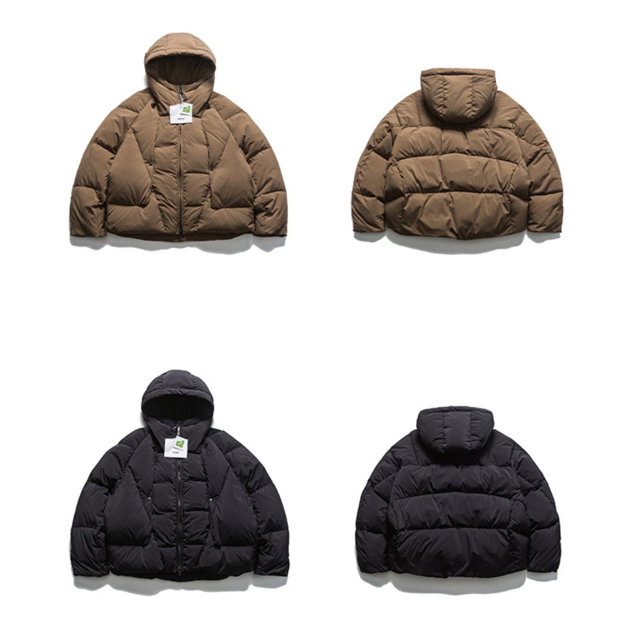 シッカリとしたボリューム感とステッチデザインが映える、ルーズシルエットのダウンジャケット。