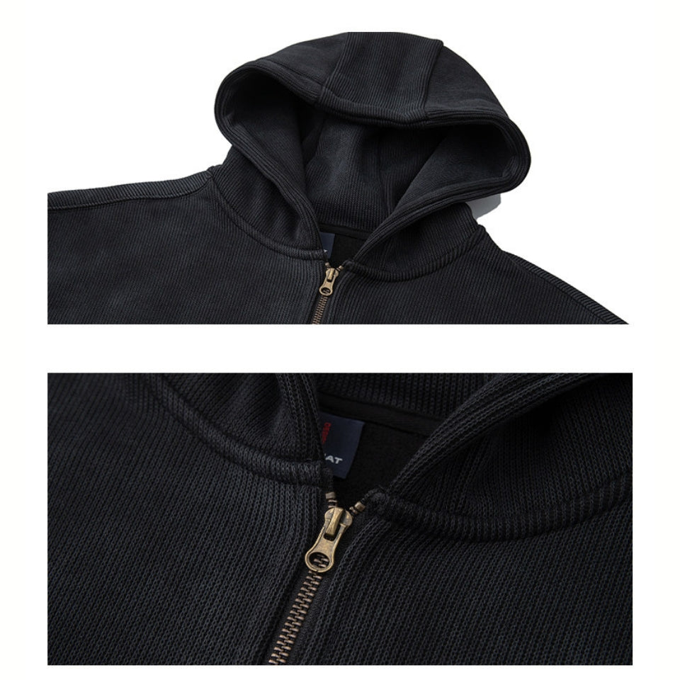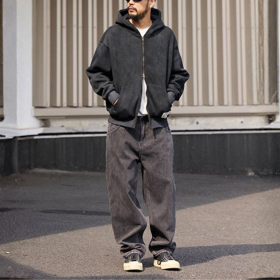 しっかりとした生地感と包み込むような着心地が魅力のジップパーカー。ほどよいボリュームとゆったりしたフォルムが、肩の力を抜いた着こなしを演出します。デイリーに活躍し、季節の変わり目にも頼れる存在です。