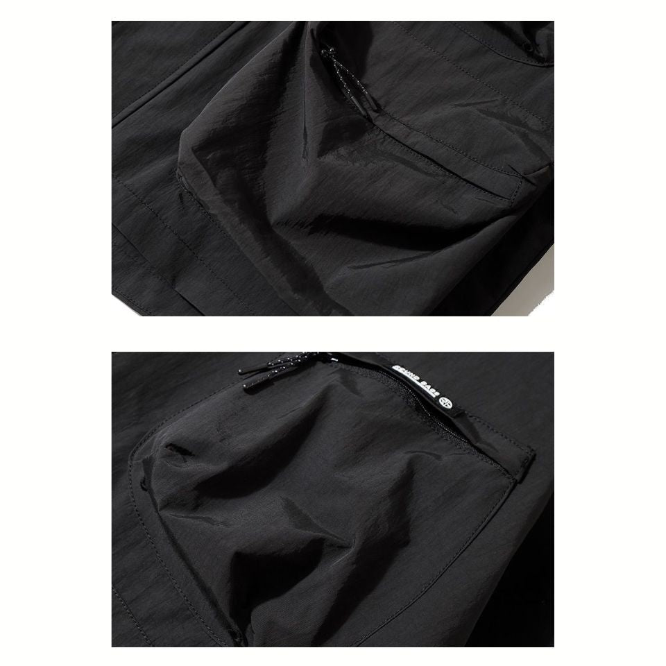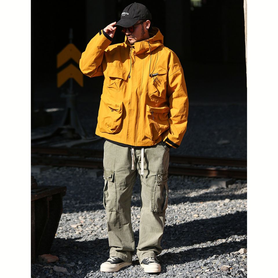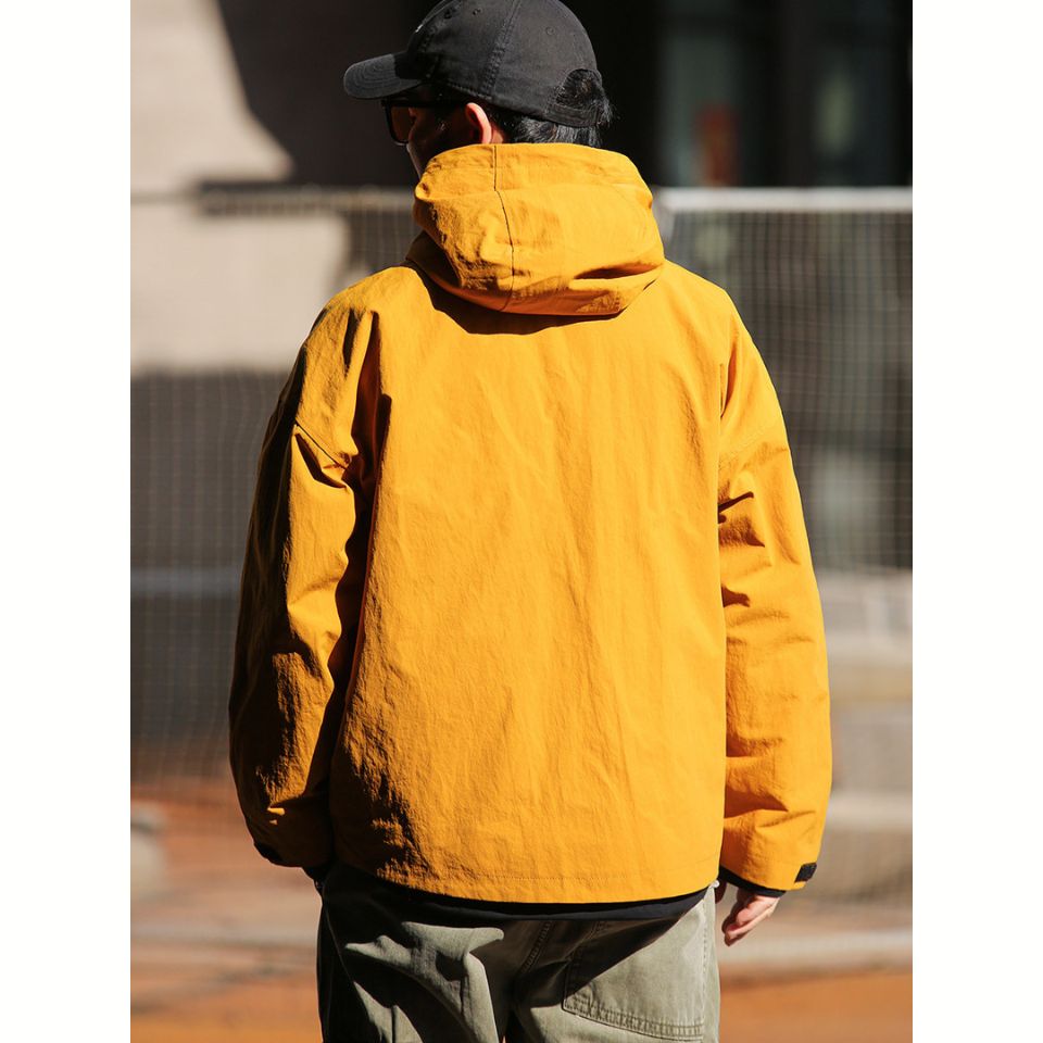 さらりと羽織れるライトシェルのフーデッドジャケット。立体的なポケットデザインとゆとりあるフォルムが、肩の力を抜いた着こなしを演出します。街歩きや休日の外出にちょうどいい、気負わず使えるアウターです。