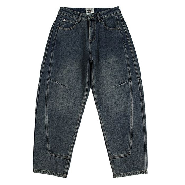 膝部分の切り替えデザインがアクセントのデニムパンツ。