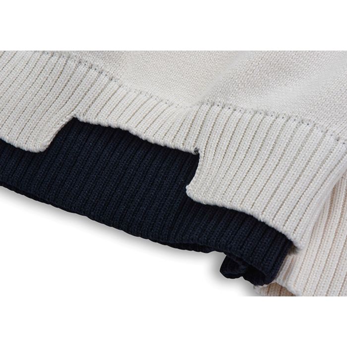 遊び心のあるレイヤードデザインのニット。