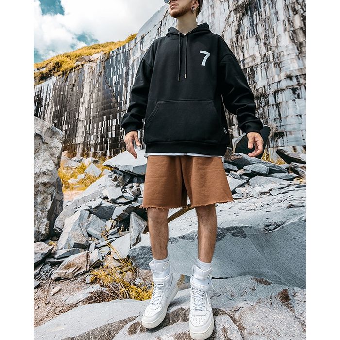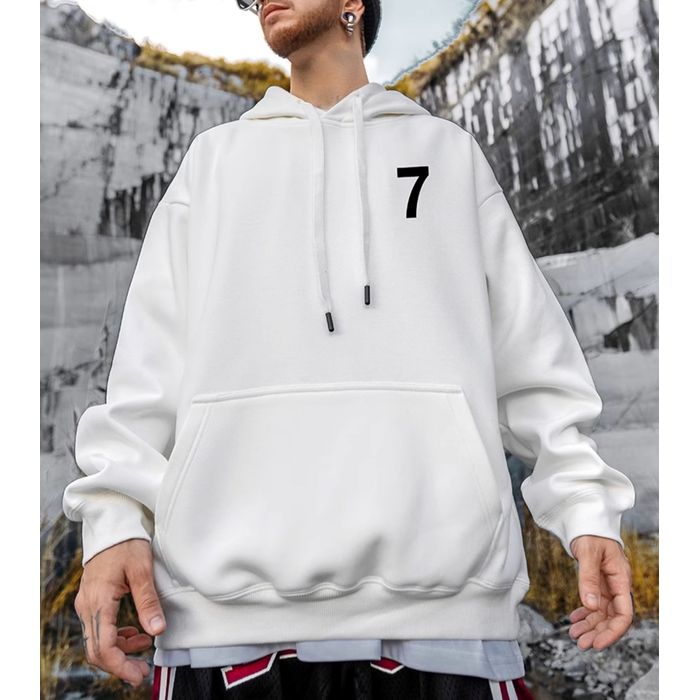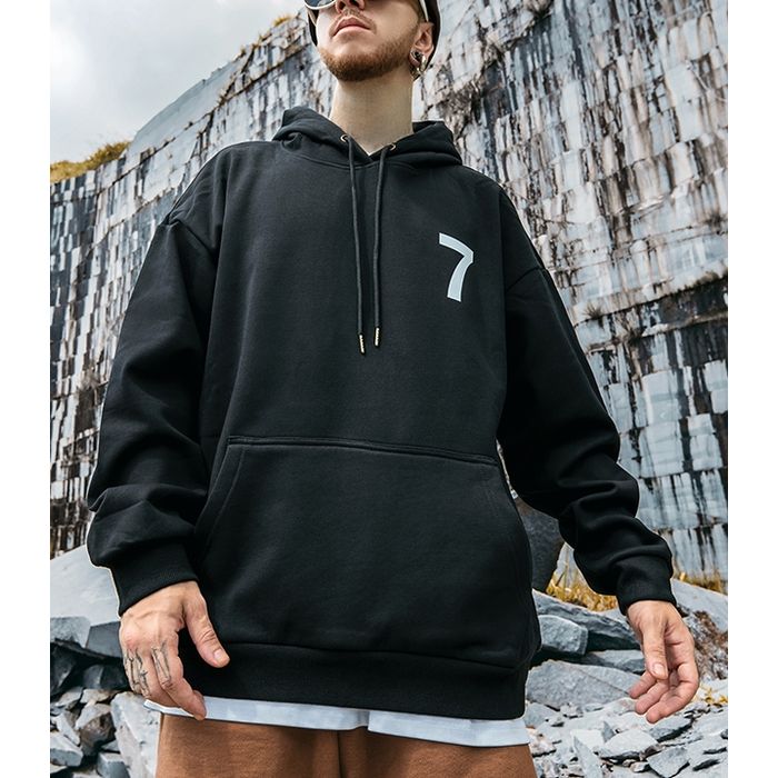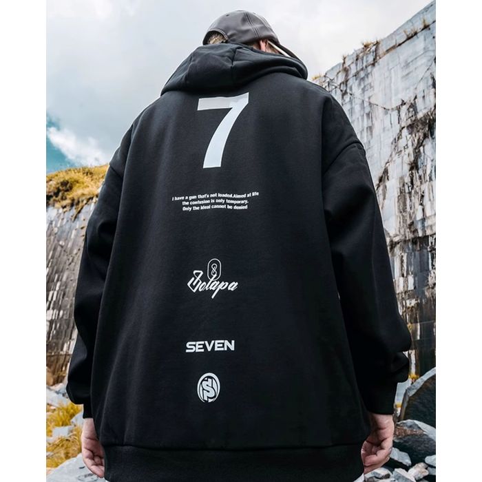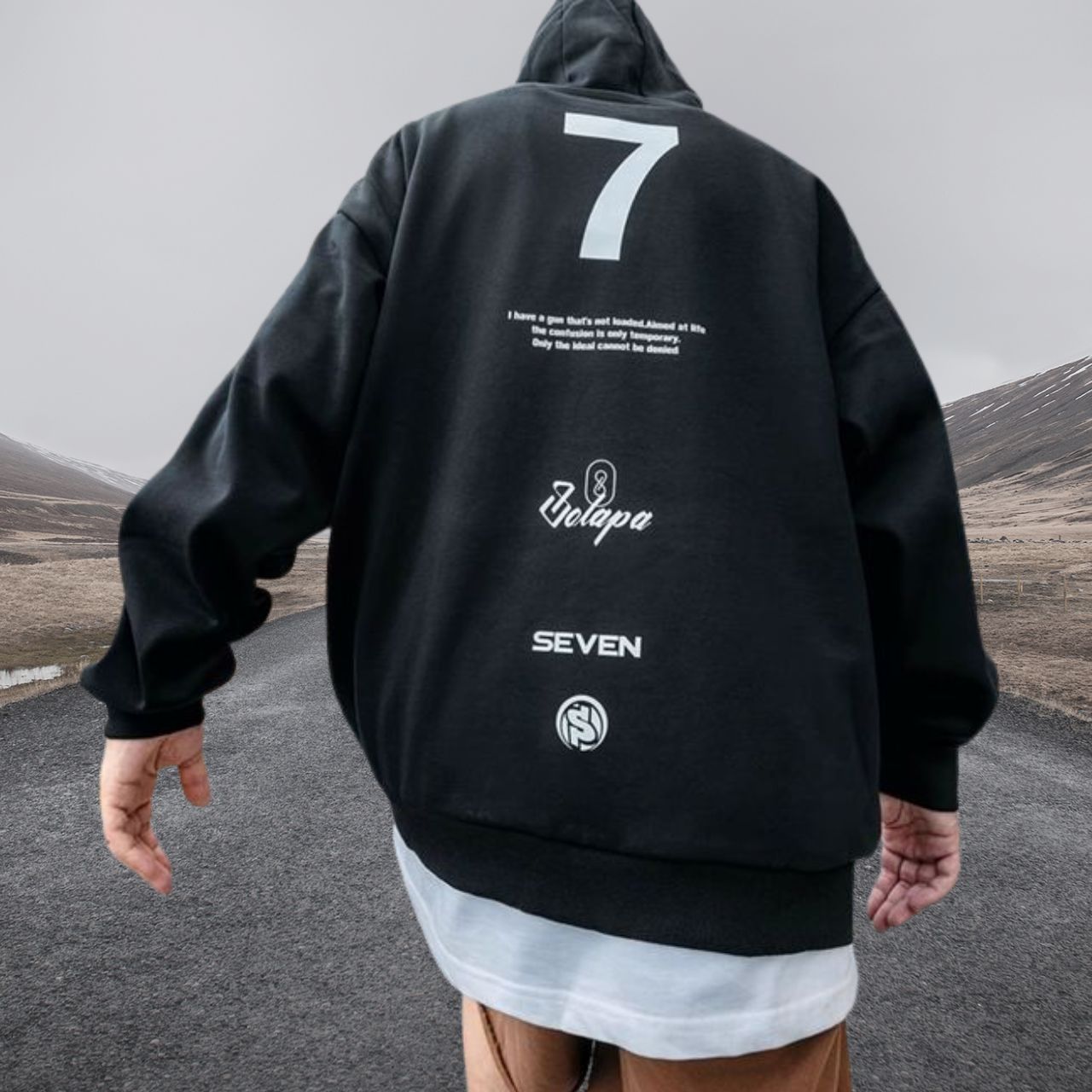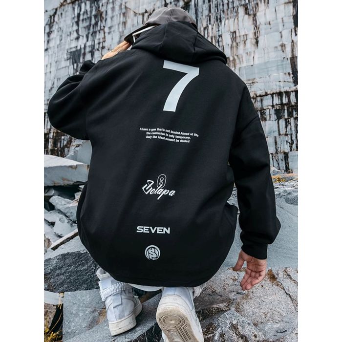 バックのプリントがアクセントのオーバーサイズフーディ。