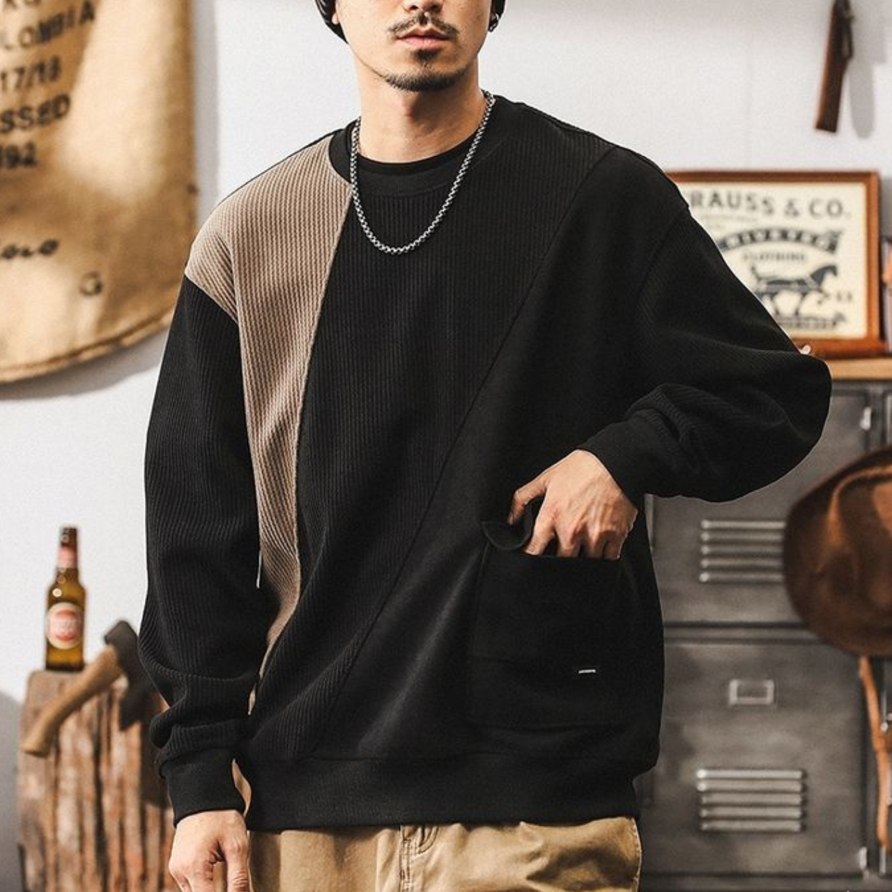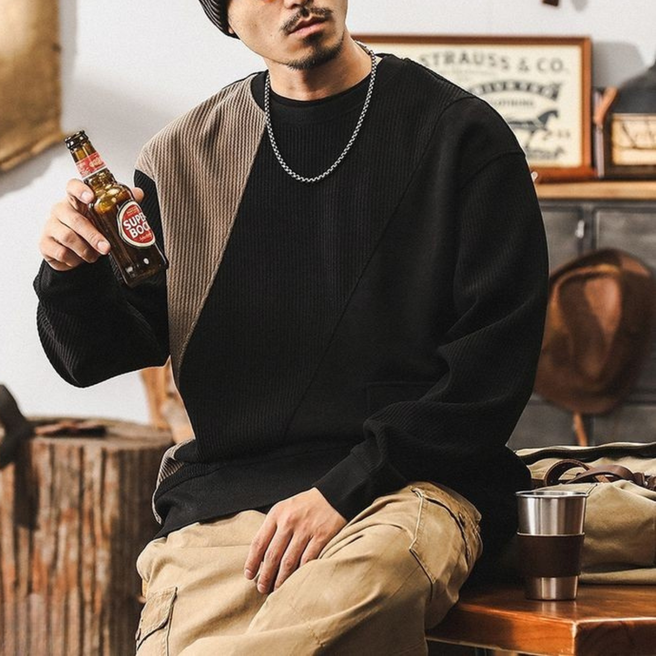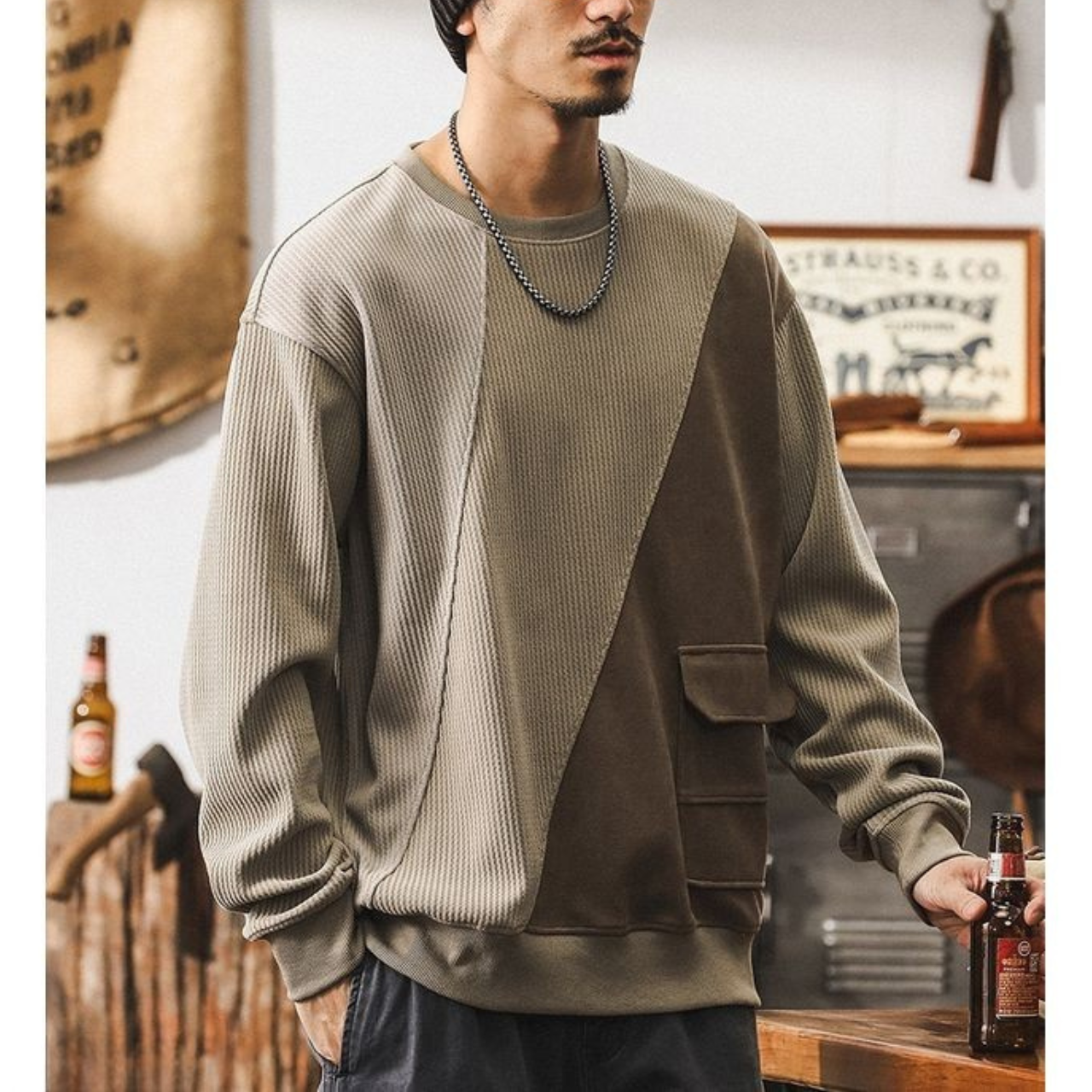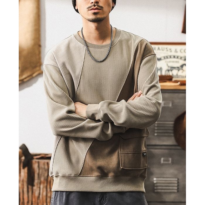 アシンメトリーな切り替えデザインが魅力のスウェット。