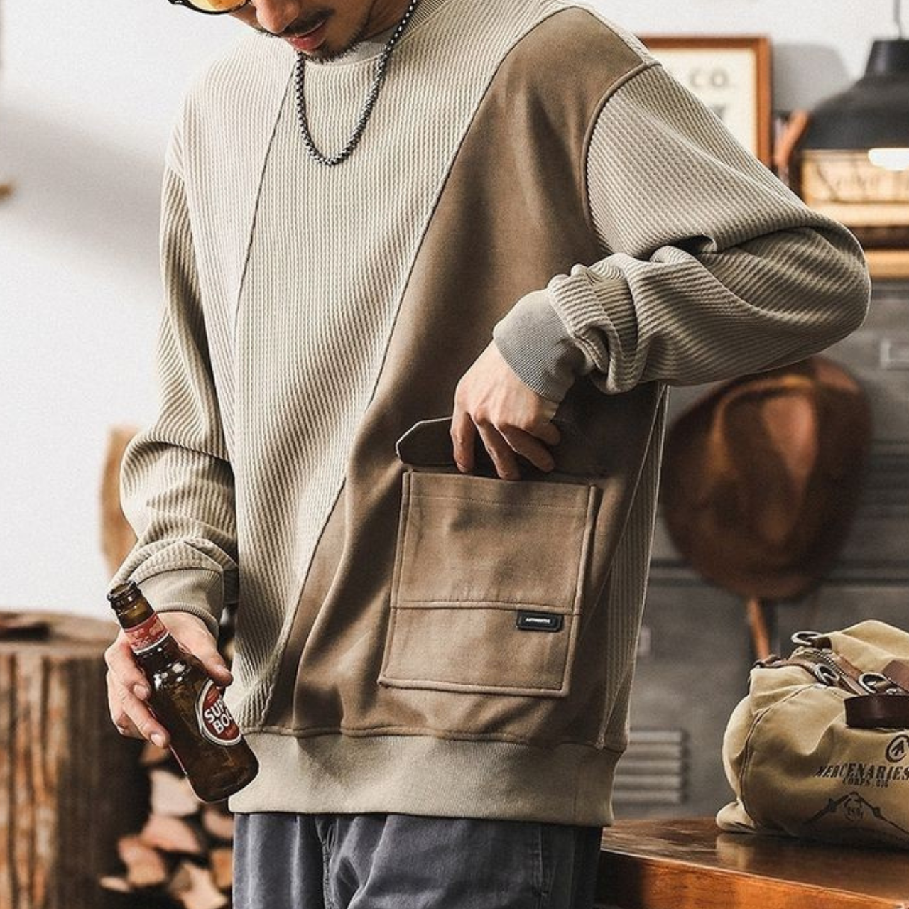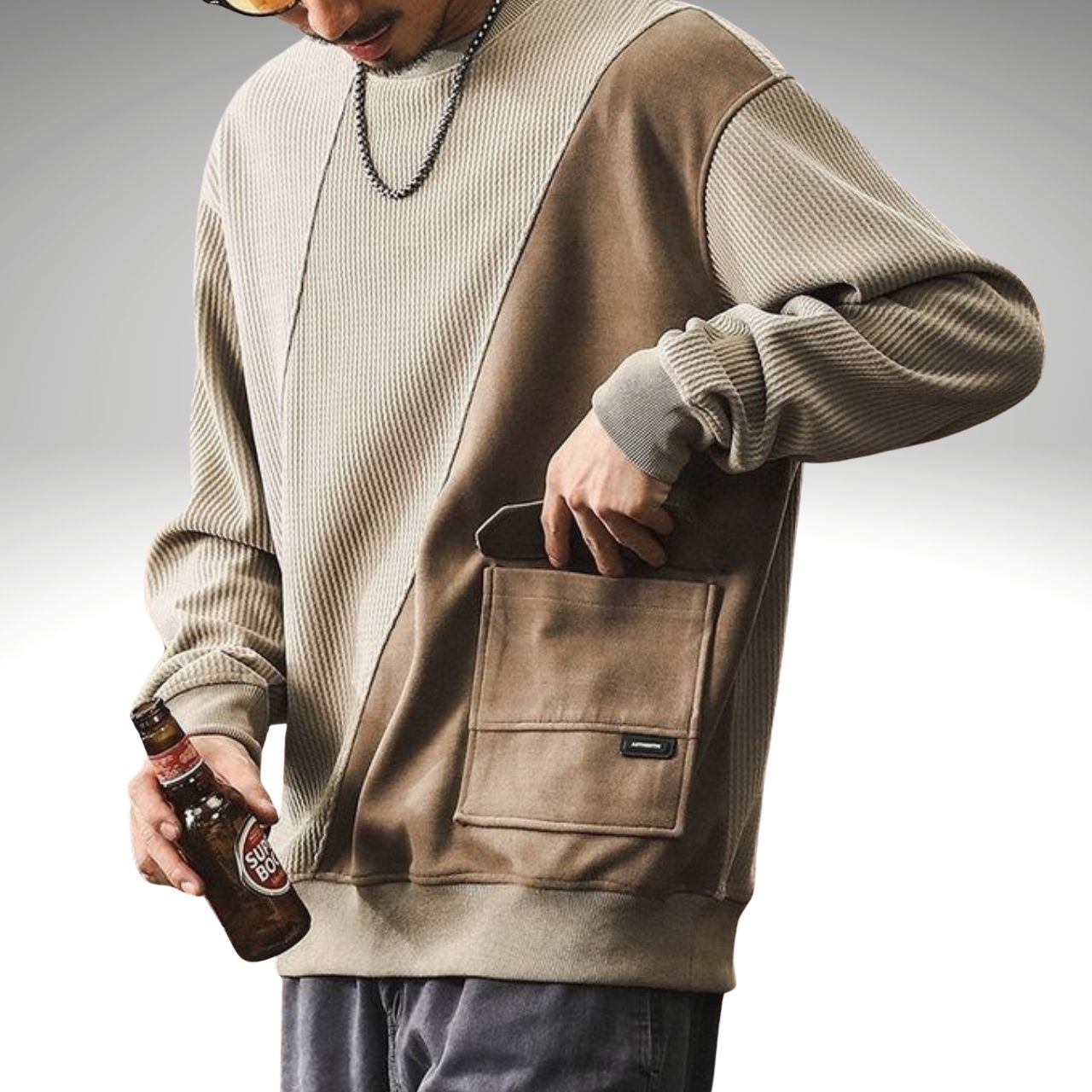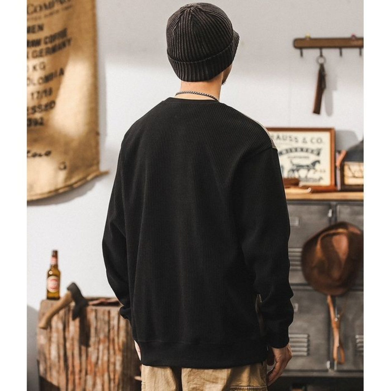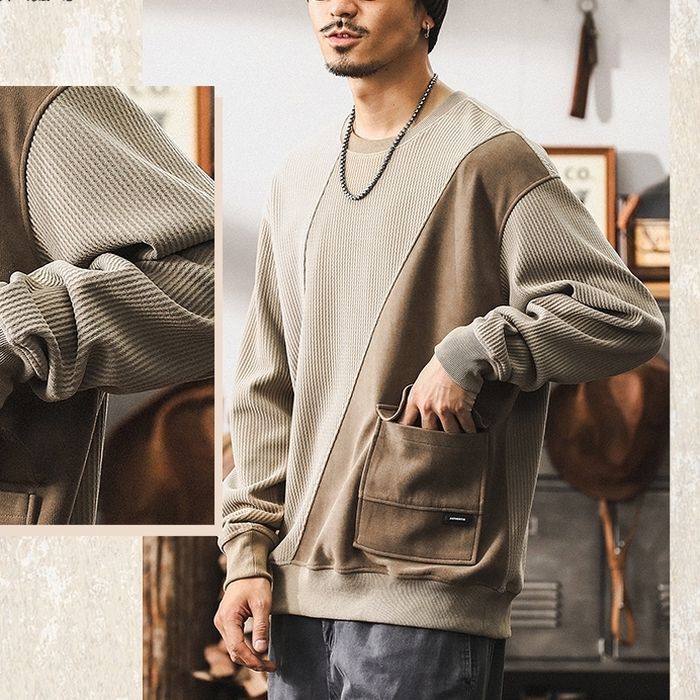 アシンメトリーな切り替えデザインが魅力のスウェット。