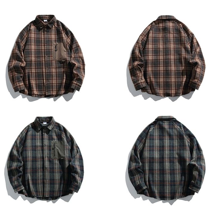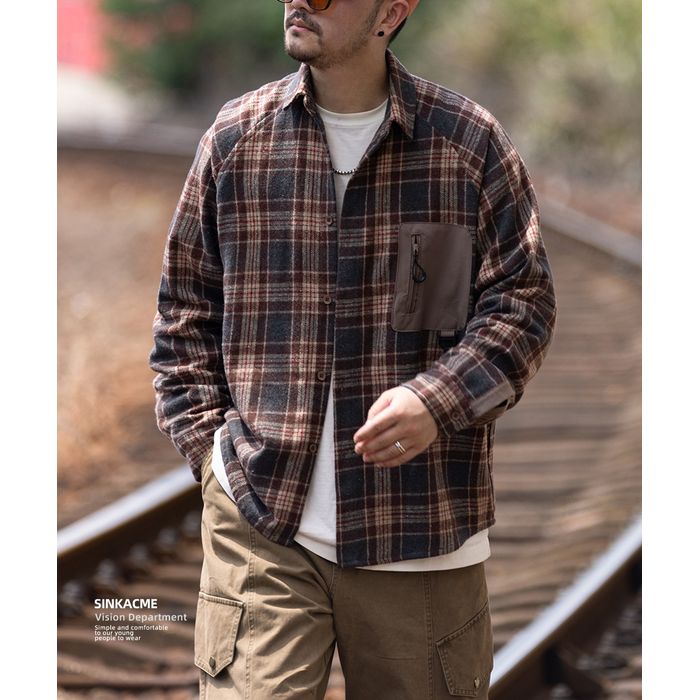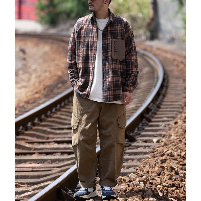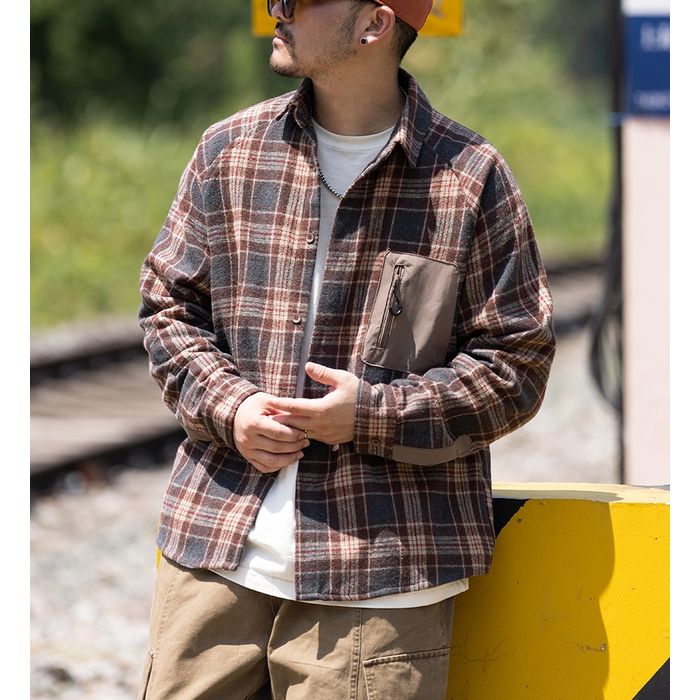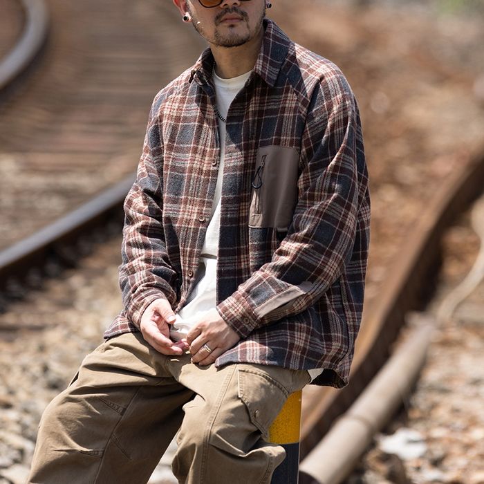 異素材ポケット チェック柄シャツ M10589